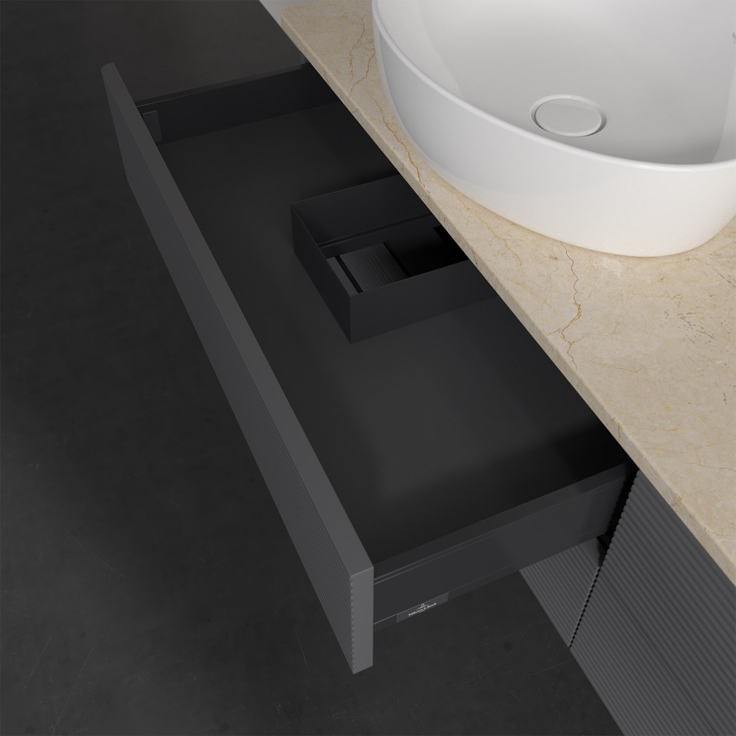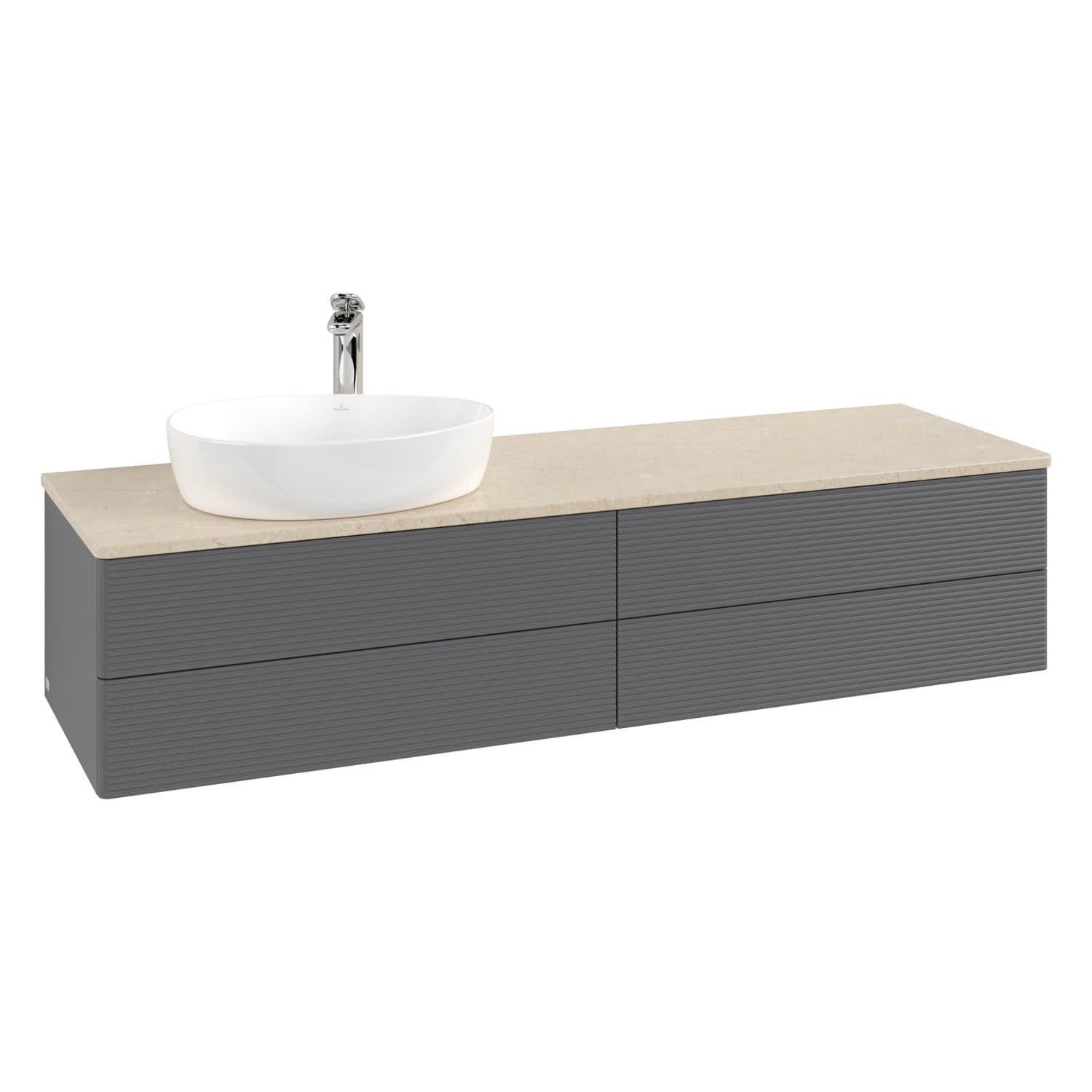 Villeroy & Boch Antao Waschbeckenunterschrank, 160 x 19 cm, 4 Auszüge, Fronten mit Struktur, mit Hahnloch, für Waschtisch links