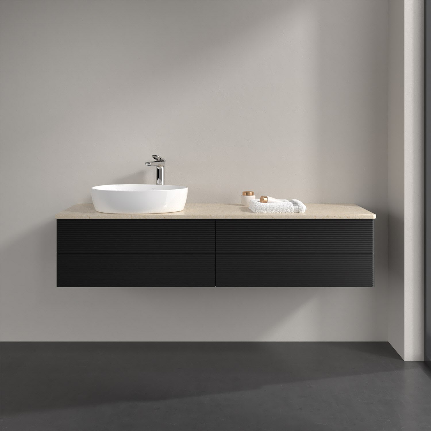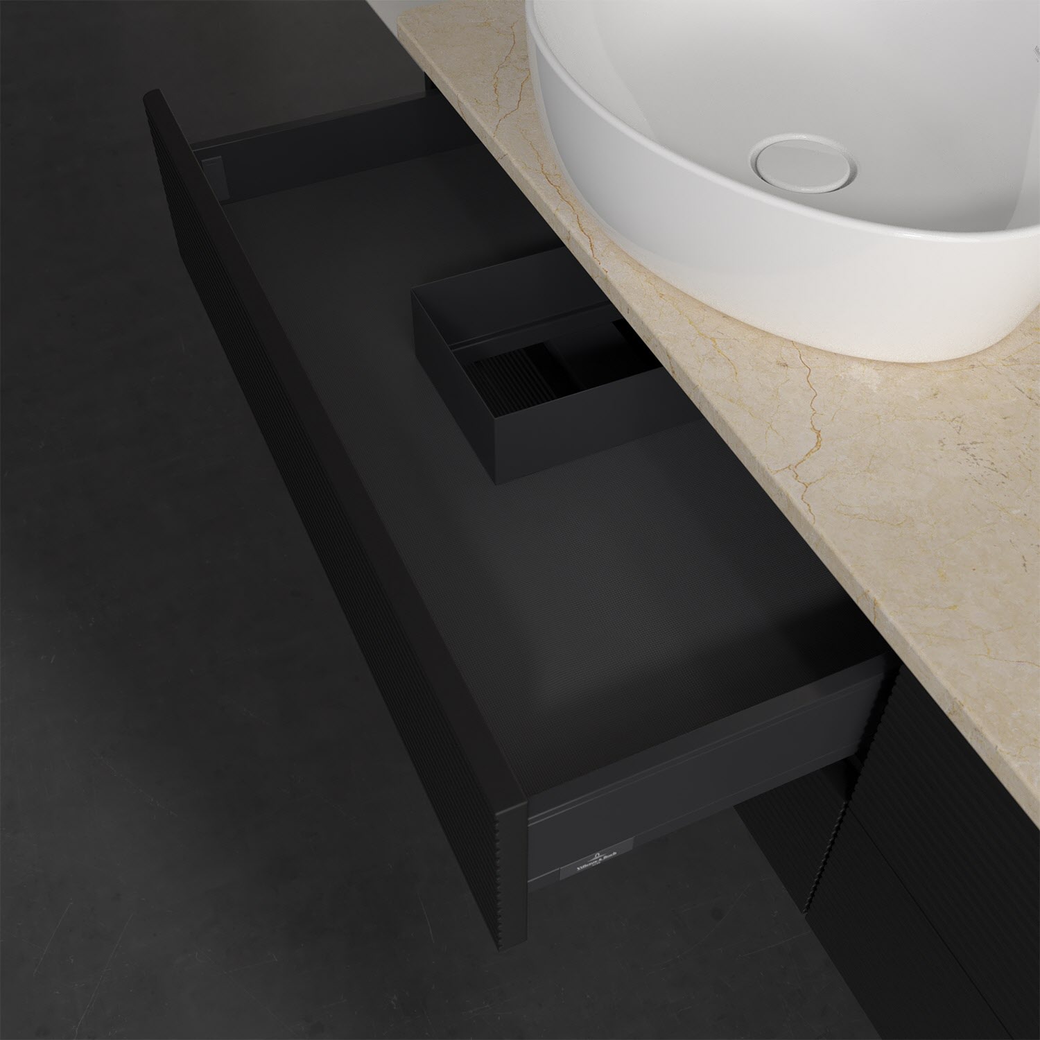 Villeroy & Boch Antao Waschbeckenunterschrank, 160 x 19 cm, 4 Auszüge, Fronten mit Struktur, mit Hahnloch, für Waschtisch links
