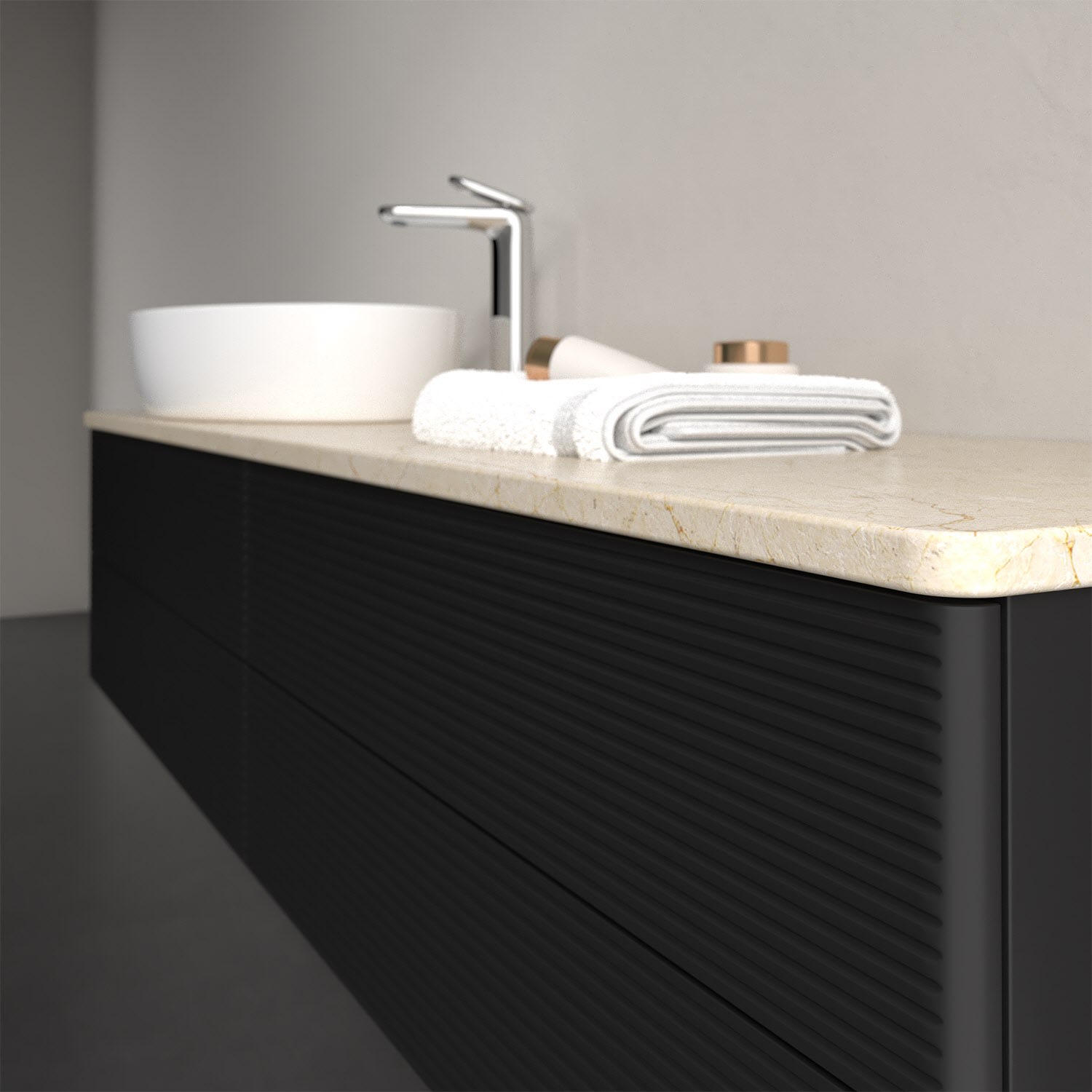 - kein Umfallen oder Verrutschen von Pflegeprodukten in den Schubladen dank rutschhemmendem Boden