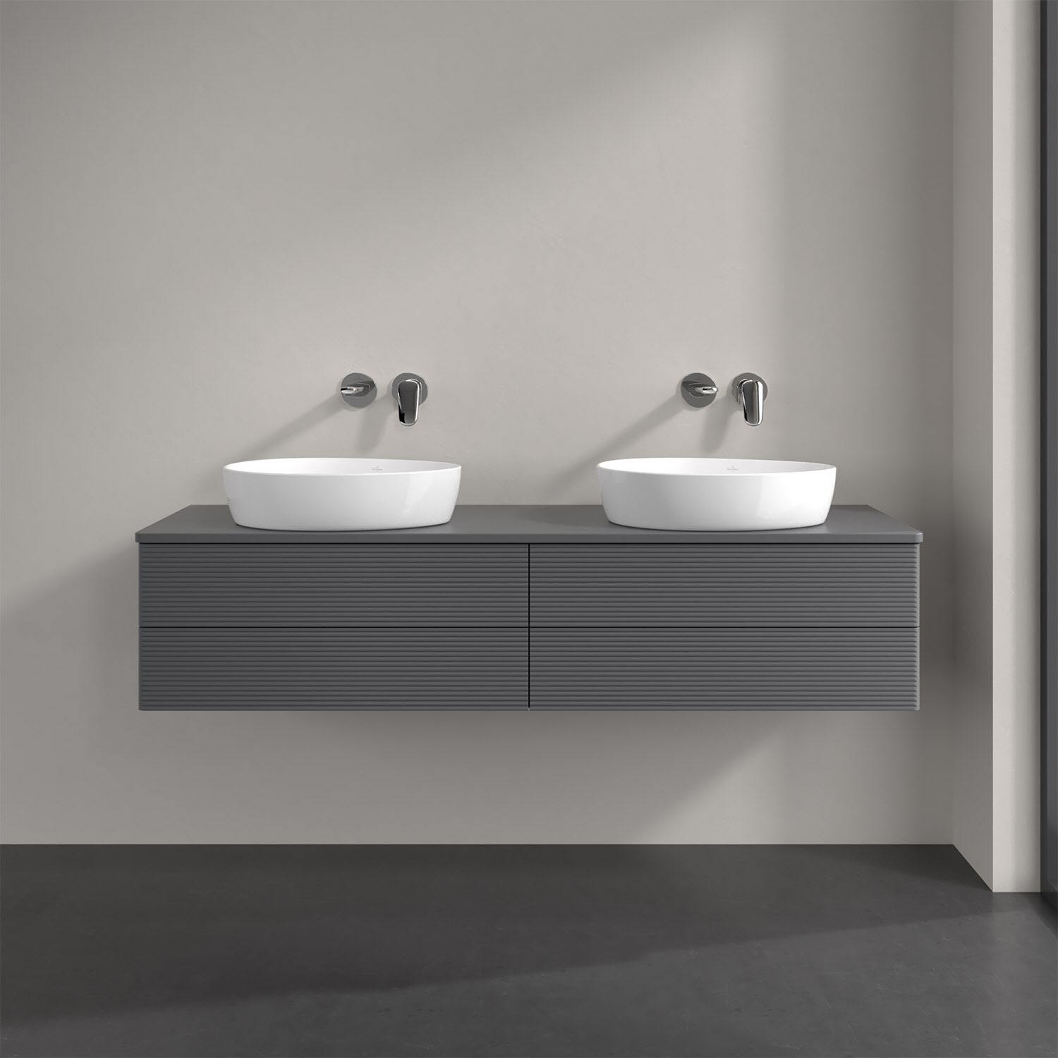 Villeroy & Boch Antao Waschbeckenunterschrank, 160 x 19 cm, 4 Auszüge, Fronten mit Struktur, mit Hahnloch, für Waschtisch links und rechts