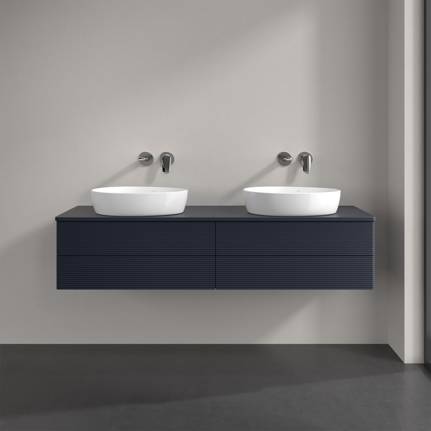 Villeroy & Boch Antao Waschbeckenunterschrank, 160 x 19 cm, 4 Auszüge, Fronten mit Struktur, mit Hahnloch, für Waschtisch links und rechts