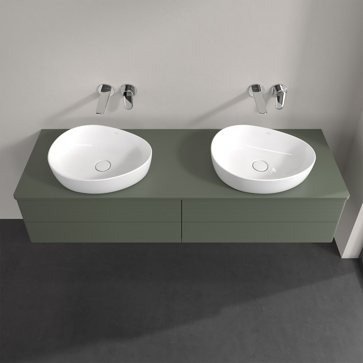 Villeroy & Boch Antao Waschbeckenunterschrank, 160 x 19 cm, 4 Auszüge, Fronten mit Struktur, mit Hahnloch, für Waschtisch links und rechts