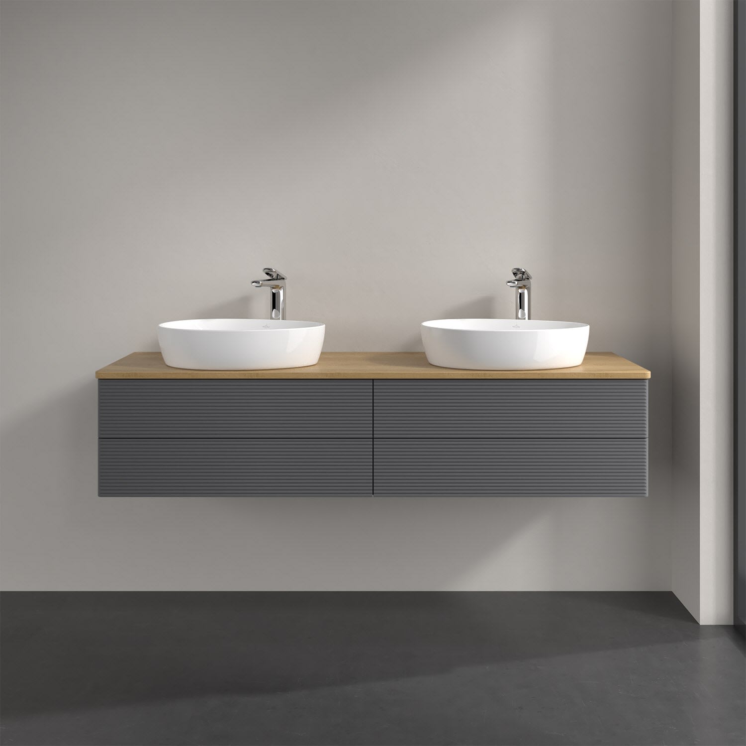 Villeroy & Boch Antao Waschbeckenunterschrank, 160 x 19 cm, 4 Auszüge, Fronten mit Struktur, mit Hahnloch, für Waschtisch links und rechts