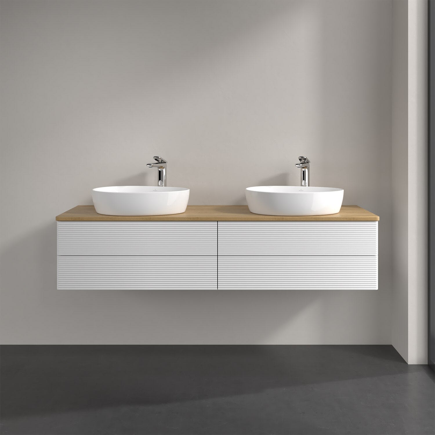 Villeroy & Boch Antao Waschbeckenunterschrank, 160 x 19 cm, 4 Auszüge, Fronten mit Struktur, mit Hahnloch, für Waschtisch links und rechts