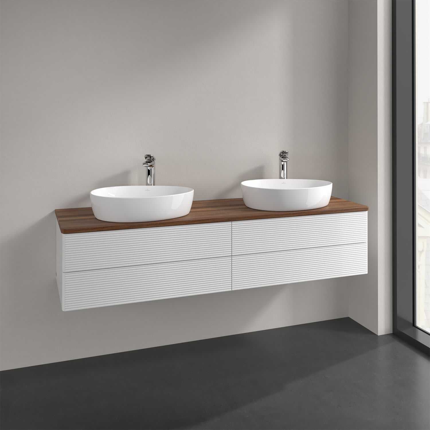 Villeroy & Boch Antao Waschbeckenunterschrank, 160 x 19 cm, 4 Auszüge, Fronten mit Struktur, mit Hahnloch, für Waschtisch links und rechts