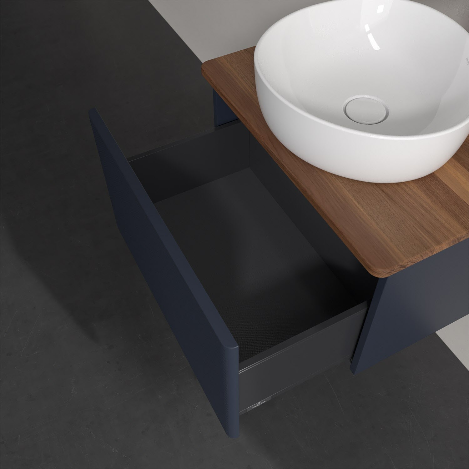 Wenig Platz im Badezimmer und dennoch soll es gemütlich und ordentlich sein? Dann ist der wandhängende Antao Waschtischunterschrank mit seinen sanft abgerundeten Kanten die ideale Lösung. Das geräumige Möbel bietet ausreichend Stauraum für alle nötigen Badutensilien. Zum Öffnen genügt dank der Push-to-Open Funktion ein leichter Druck auf den extra hohen Auszug mit strukturierter Front, der sich dann in seiner vollen Tiefe öffnet. Das garantiert den benötigen Überblick! Praktisch ist auch der integrierte Antirutschboden und die SoftClosing Funktion, die ein Umfallen oder Verrutschen der verstauten Produkte verhindern. Villeroy & Boch hat alles durchdacht! Für eine besonders leichte Pflege sorgt die mehrschichtig deckend lackierte Oberfläche. Bei der Ausführung in Massivholz wird dank des verarbeiteten Massivholzes jedes Möbel zu einem Unikat, das sich durch das lebendige Naturmaterial durch seine einzigartige Struktur und Maserung auszeichnet.