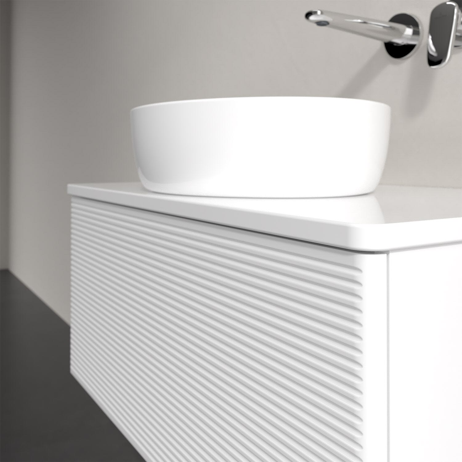 Mit dem wandhängenden Waschtischunterschrank der Kollektion Antao wird ein natürliches und gemütliches Flair am Waschplatz geschaffen. Dafür sorgen die sanfte Formsprache mit abgerundeten Kanten und die strukturierte Front des hochwertigen Badmöbels. Die wichtigsten Badutensilien für die tägliche Routine können seitlich des Waschtischs auf die Waschtischplatte gestellt werden. Ansonsten bietet ein extra hoher Auszug inklusive Antirutschboden ausreichend Platz für weitere Produkte, die garantiert bleiben, wo sie hingehören. Der Unterschrank verfügt zudem über einen Vollauszug und Selbsteinzug mit SoftClosing Funktion, damit er bequem und mühelos geöffnet und geschlossen werden kann. Gewohnte Qualität von Villeroy & Boch! Für eine besonders leichte Pflege sorgt die mehrschichtig deckend lackierte Oberfläche.