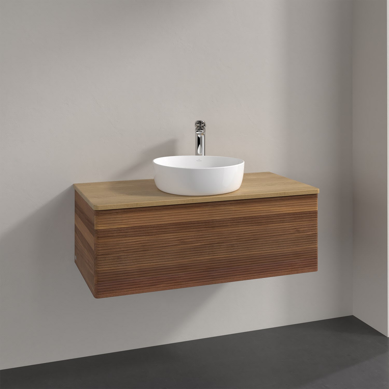 Villeroy & Boch Antao Waschbeckenunterschrank, 100 x 36 cm, 1 Auszug, Front mit Struktur, mit Hahnloch