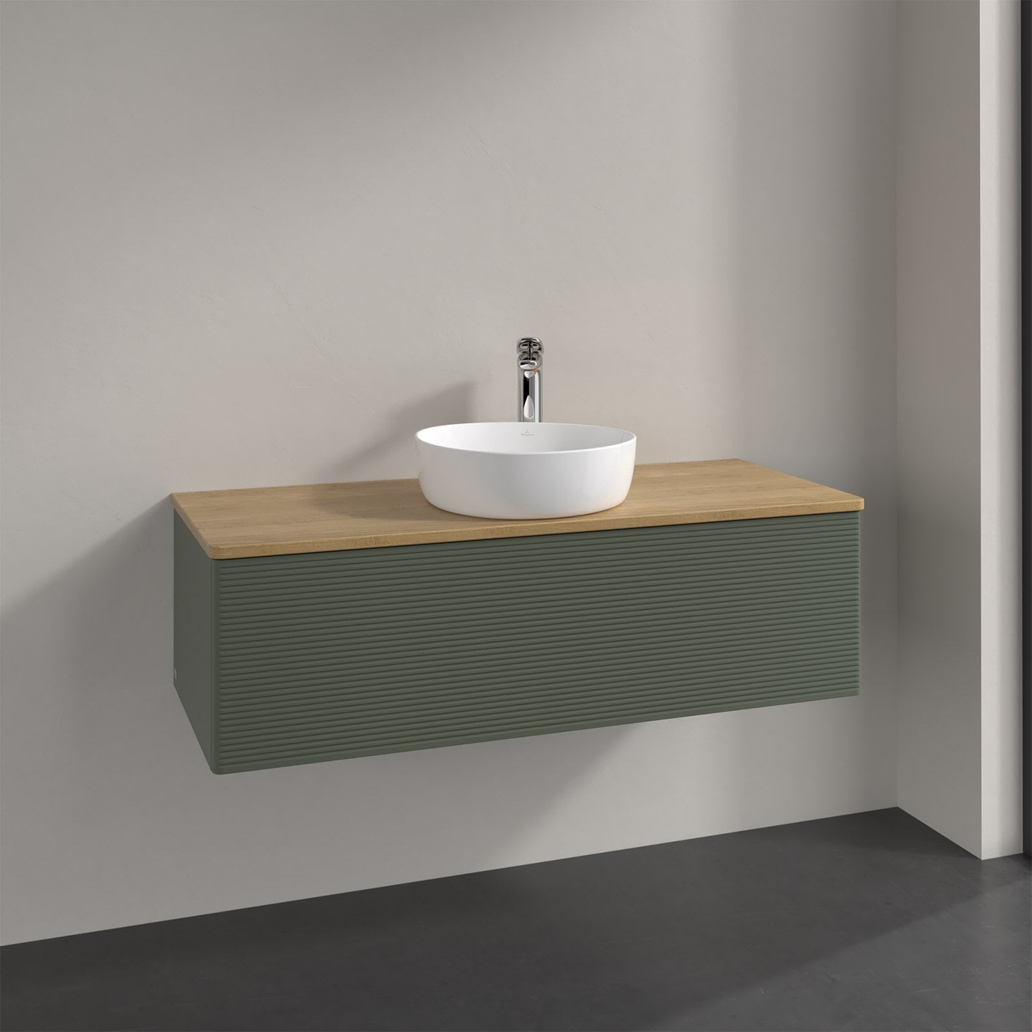 Villeroy & Boch Antao Waschbeckenunterschrank, 120 x 36 cm, 1 Auszug, Front mit Struktur, mit Hahnloch, für Waschtisch mittig