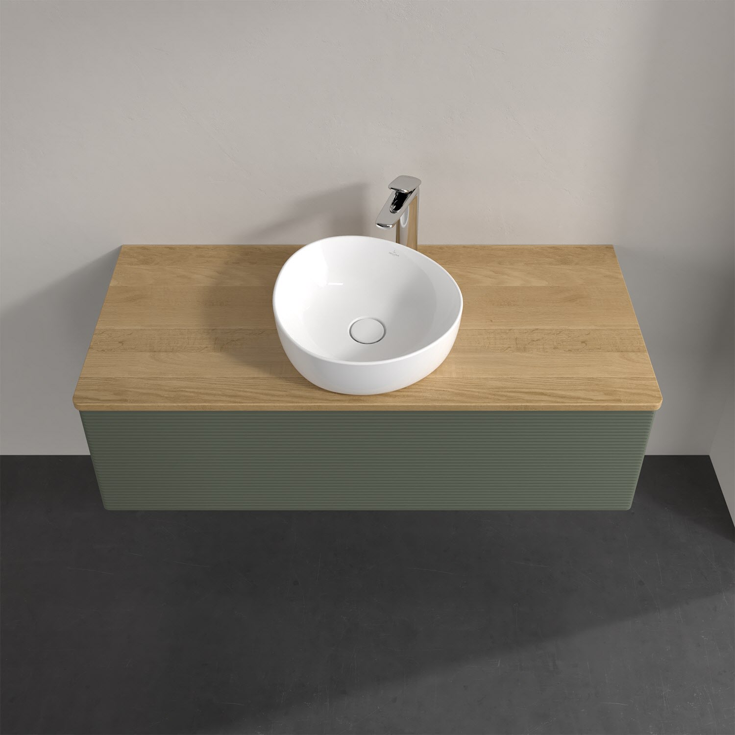 Für diesen Waschbeckenunterschrank stehen Ihnen Aufsatzwaschtische aus verschiedenen Serien zur Verfügung (siehe "Passliste" unter Downloads). Ein ausgewähltes Beispiel finden Sie im Zubehör. Den Waschtisch bitte separat mitbestellen.