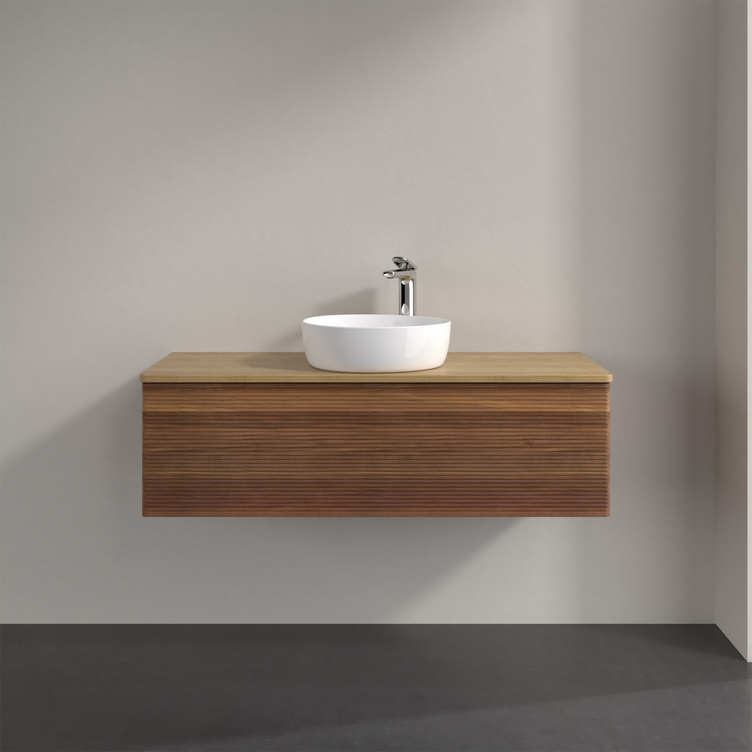 Villeroy & Boch Antao Waschbeckenunterschrank, 120 x 36 cm, 1 Auszug, Front mit Struktur, mit Hahnloch, für Waschtisch mittig