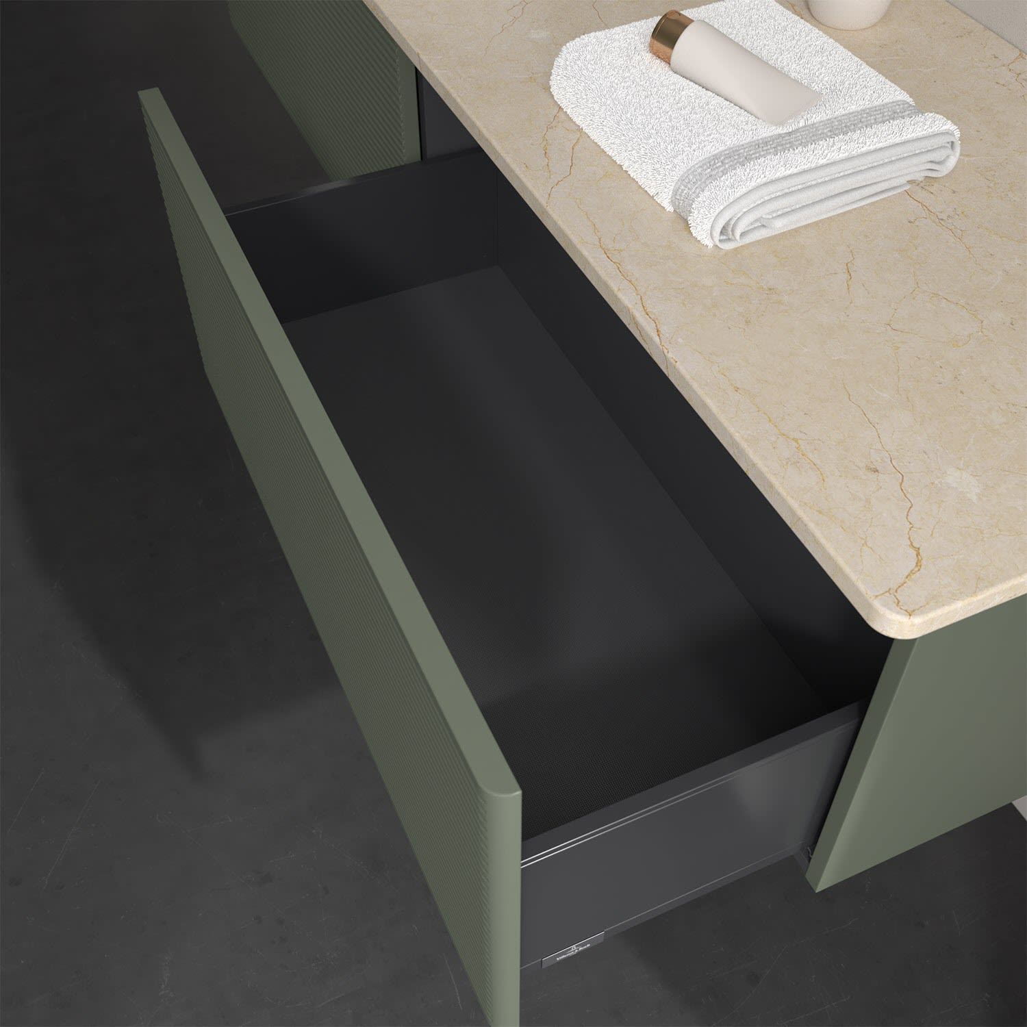 Villeroy & Boch Antao Waschbeckenunterschrank, 160 x 36 cm, 2 Auszüge, Front mit Struktur, mit Hahnloch, für Waschtisch links