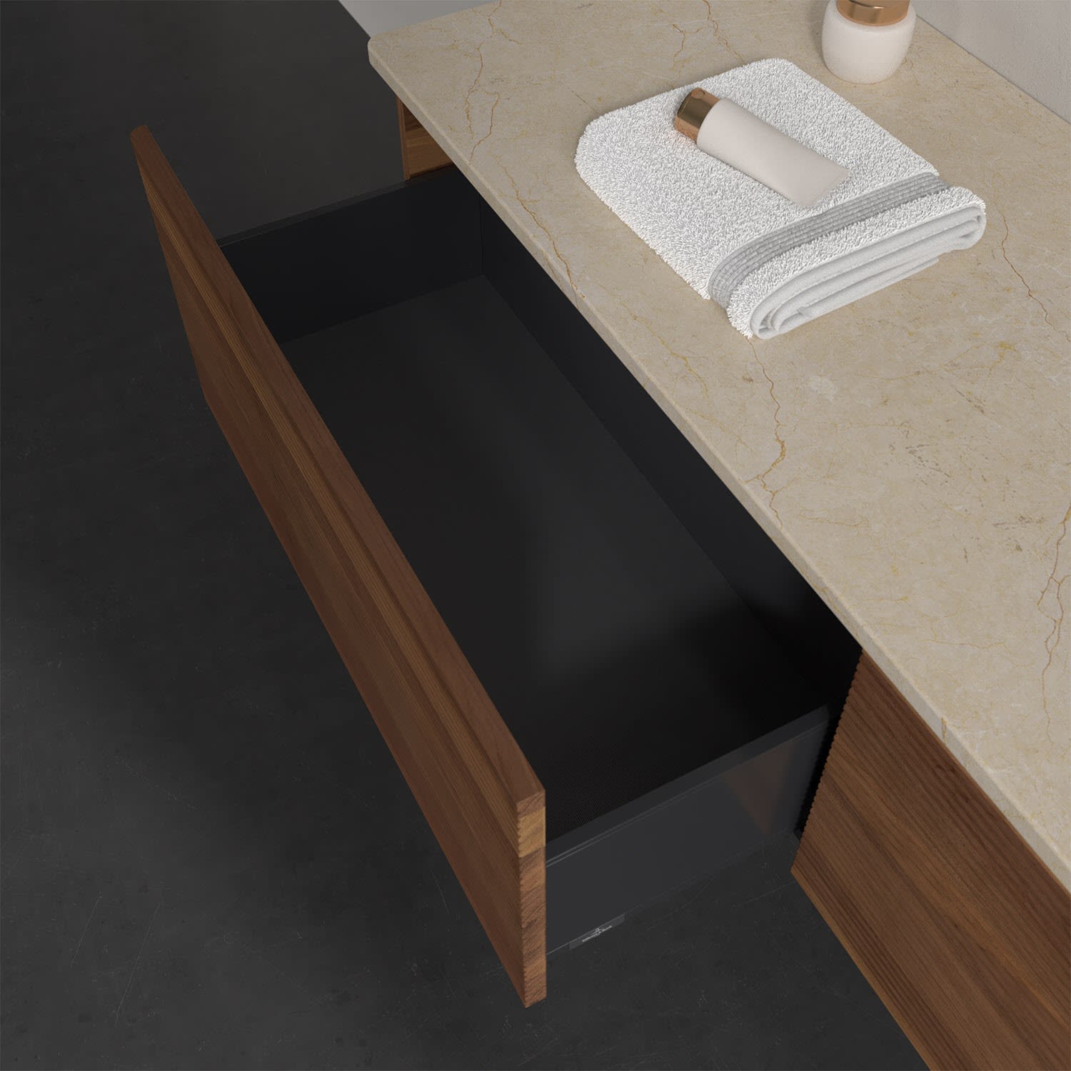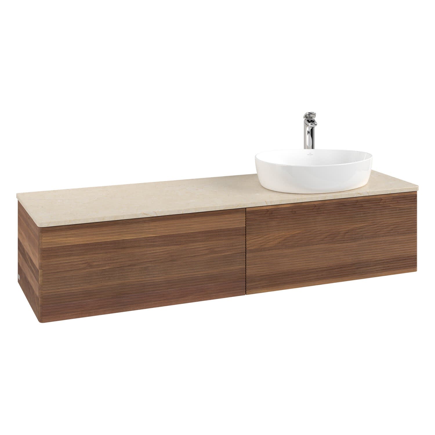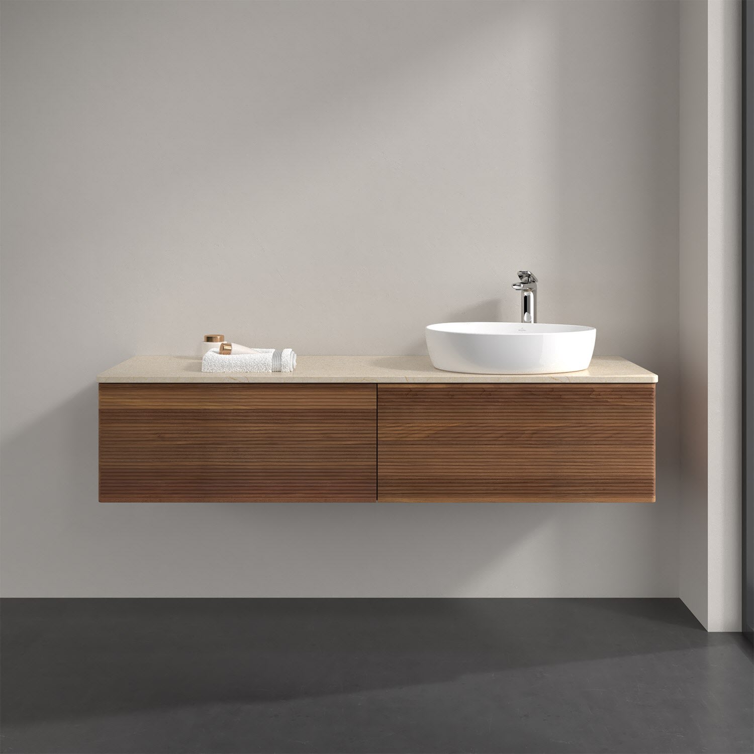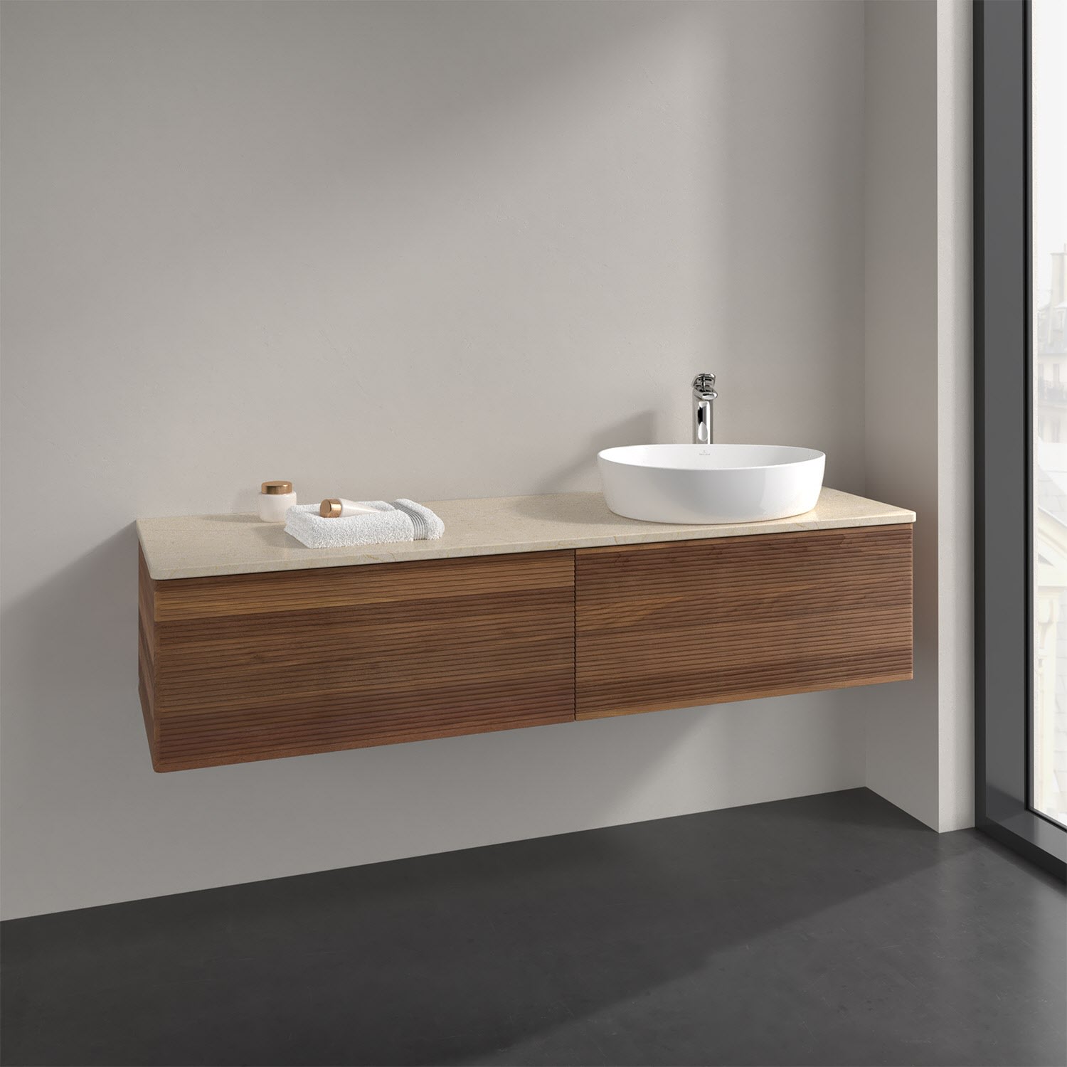 Villeroy & Boch Antao Waschbeckenunterschrank, 160 x 36 cm, 2 Auszüge, Front mit Struktur, mit Hahnloch, für Waschtisch rechts