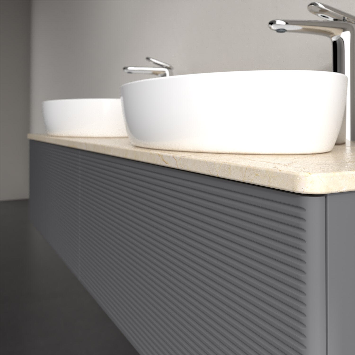 Für diesen Waschbeckenunterschrank stehen Ihnen Aufsatzwaschtische aus verschiedenen Serien zur Verfügung (siehe "Passliste" unter Downloads). Ein ausgewähltes Beispiel finden Sie im Zubehör. Den Waschtisch bitte separat mitbestellen.