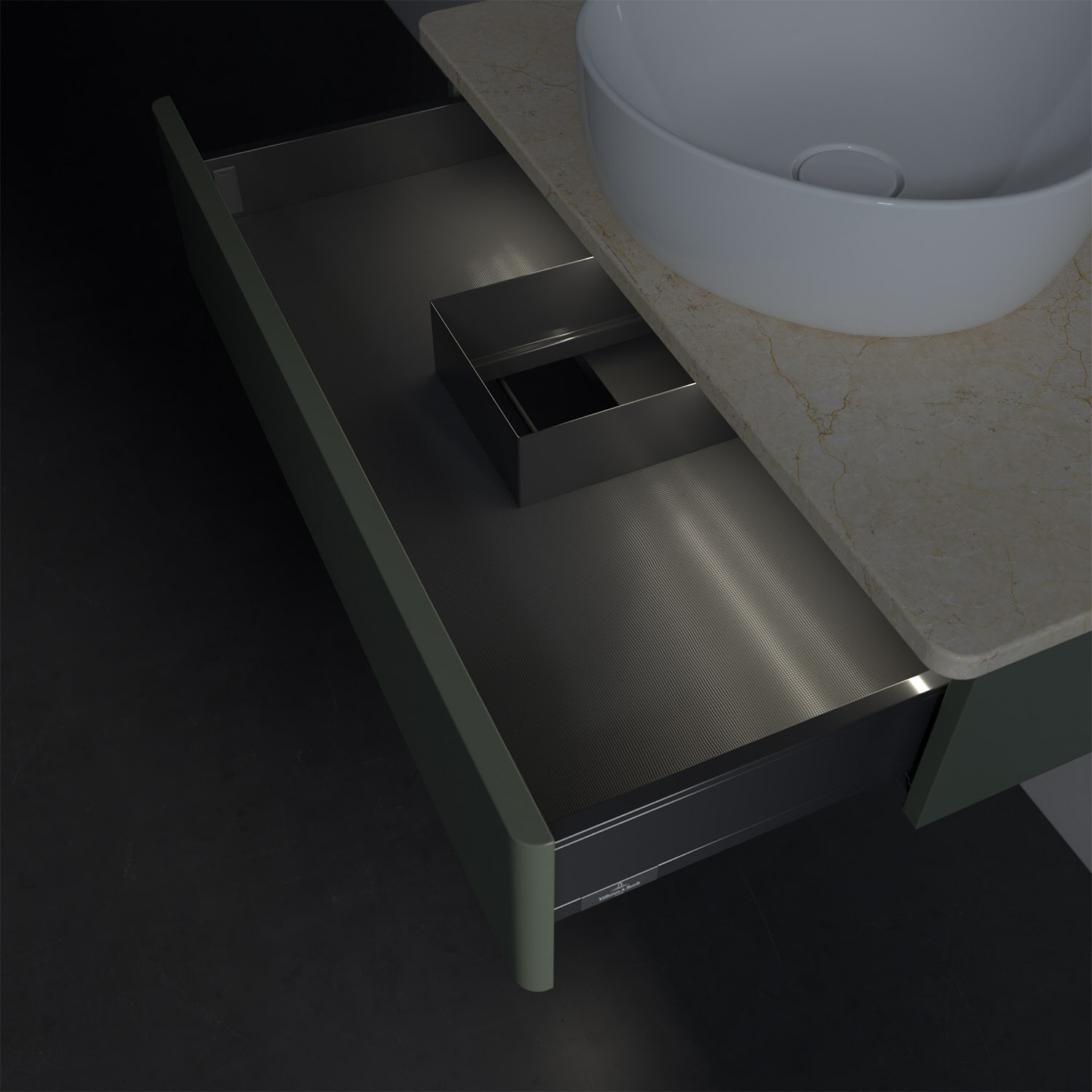 - kein Umfallen oder Verrutschen von Pflegeprodukten in den Schubladen dank rutschhemmendem Boden