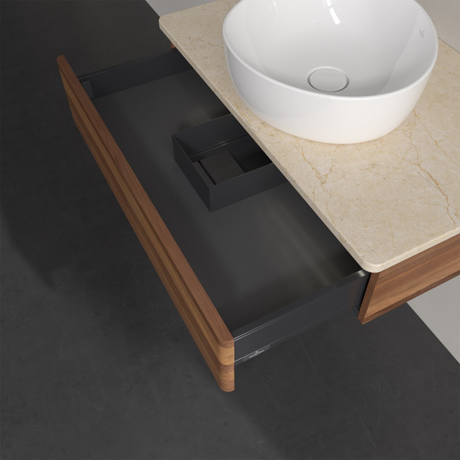 Für diesen Waschbeckenunterschrank stehen Ihnen Aufsatzwaschtische aus verschiedenen Serien zur Verfügung (siehe "Passliste" unter Downloads). Ein ausgewähltes Beispiel finden Sie im Zubehör. Den Waschtisch bitte separat mitbestellen.