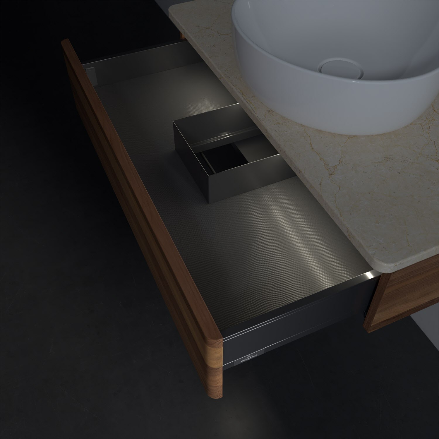 - kein Umfallen oder Verrutschen von Pflegeprodukten in den Schubladen dank rutschhemmendem Boden