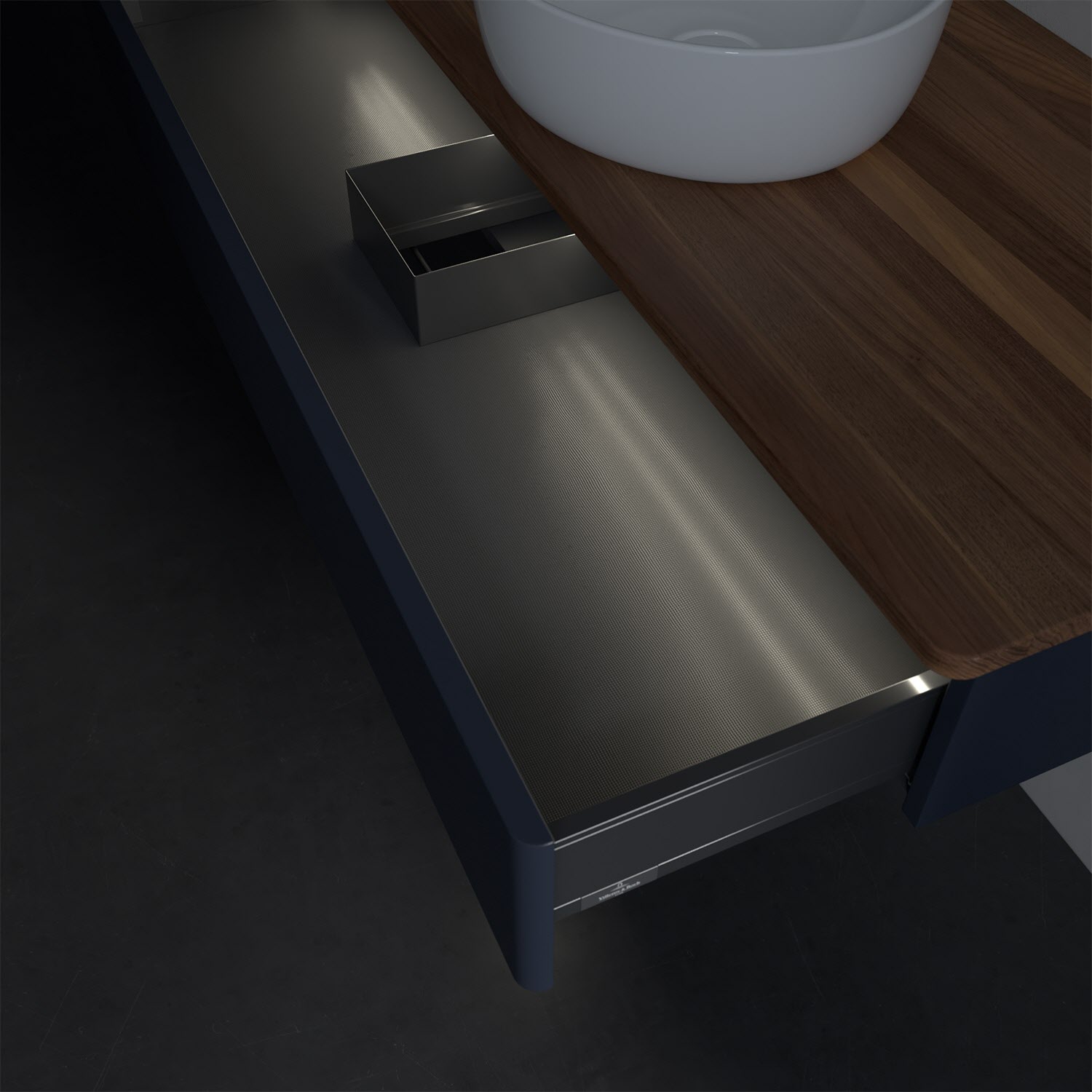 Villeroy & Boch Antao Waschbeckenunterschrank, 120 x 19 cm, 1 Auszug mit LED-Licht, Front ohne Struktur, ohne Hahnloch, für Waschtisch mittig