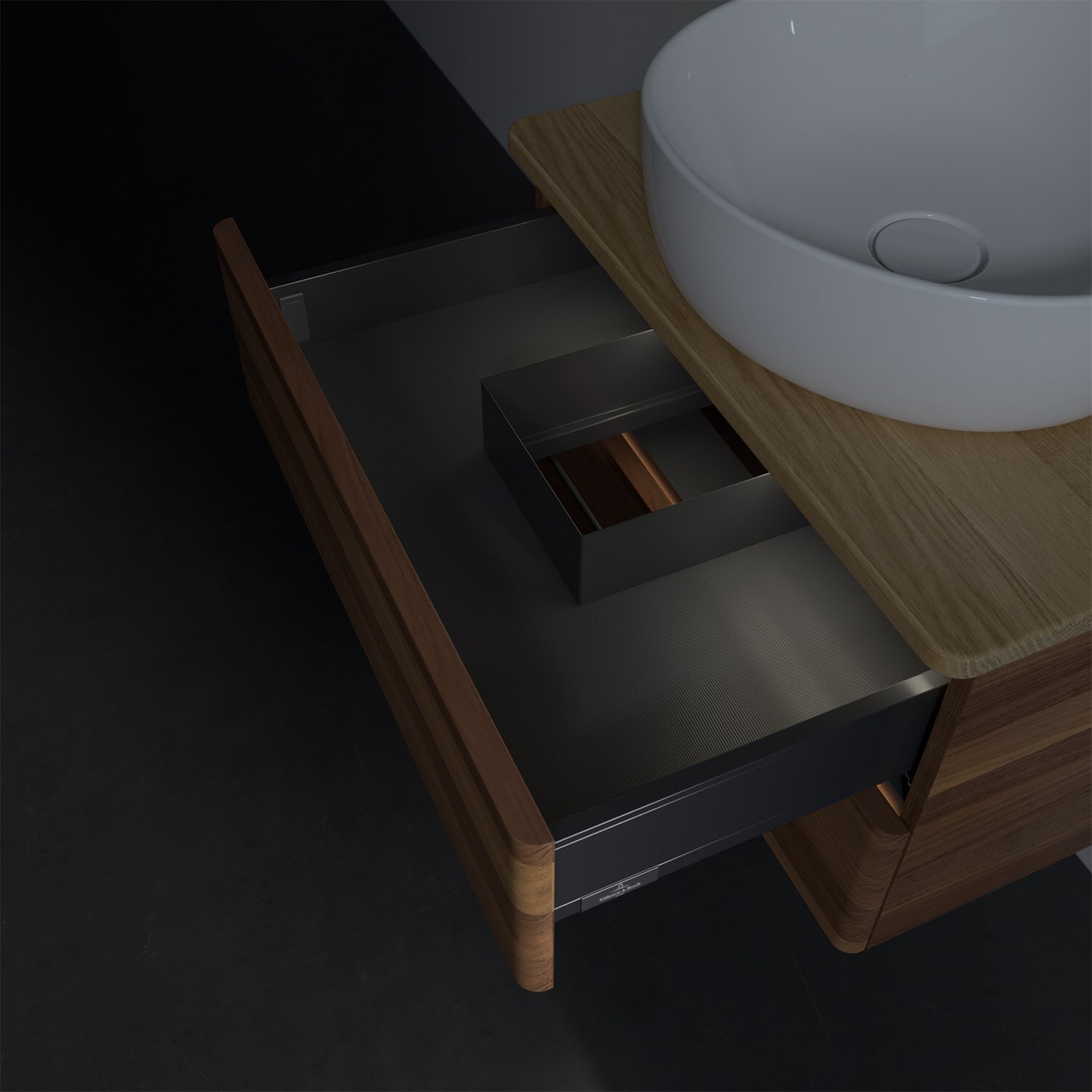 Wenig Platz im Badezimmer und dennoch soll es gemütlich und ordentlich sein? Dann ist der wandhängende Antao Waschtischunterschrank mit seinen sanft abgerundeten Kanten die ideale Lösung. Das geräumige Möbel bietet ausreichend Stauraum für alle nötigen Badutensilien. Zum Öffnen genügt dank der Push-to-Open Funktion ein leichter Druck auf die beiden grifflosen Auszüge, die sich dann in ihrer vollen Tiefe öffnen. Dabei wird gleichzeitig die angenehme Auszugsbeleuchtung in Warmweiß aktiviert. Das garantiert den benötigen Überblick! Praktisch ist auch der integrierte Antirutschboden und die SoftClosing Funktion, die ein Umfallen oder Verrutschen der verstauten Produkte verhindern. Villeroy & Boch hat alles durchdacht! Für eine besonders leichte Pflege sorgt die mehrschichtig deckend lackierte Oberfläche. Bei der Ausführung in Massivholz wird dank des verarbeiteten Massivholzes jedes Möbel zu einem Unikat, das sich durch das lebendige Naturmaterial durch seine einzigartige Struktur und Maserung auszeichnet.