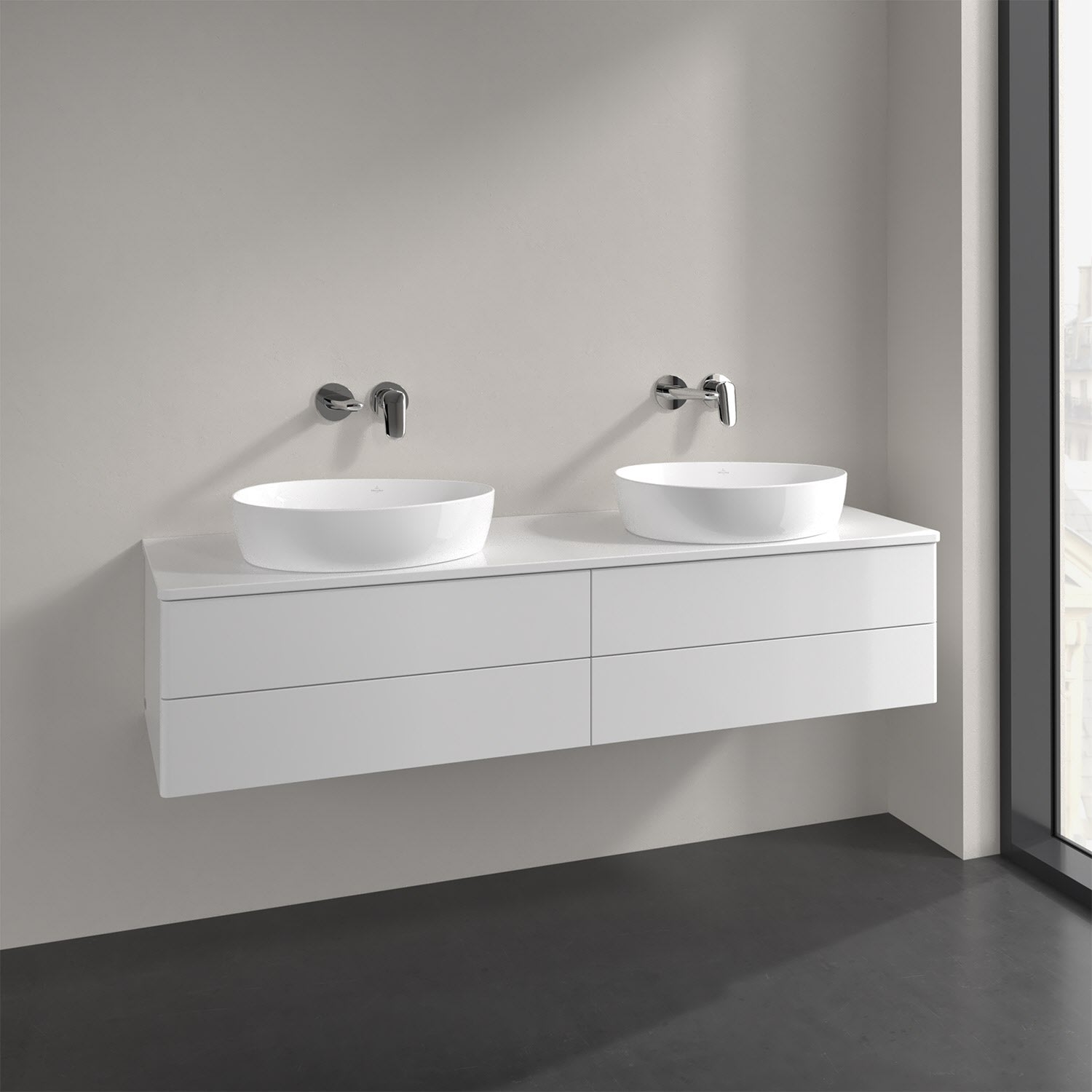 Villeroy & Boch Antao Waschbeckenunterschrank, 160 x 36 cm, 4 Auszüge mit LED-Licht, Front ohne Struktur, ohne Hahnloch, für Waschtisch links und rech