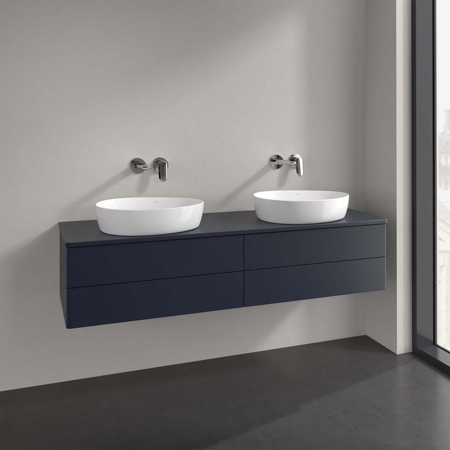 Der wandhängende Antao Waschtischunterschrank für zwei Aufsatzwaschtische bietet mit seinen vier Auszügen und seiner erstaunlichen Größe viel Platz zum Verstauen von Utensilien im Badezimmer. Inspiriert von der Natur überzeugt der Unterschrank auch optisch mit sanfter Formsprache und abgerundete Kanten. Die grifflosen Auszüge sind mit der Push-to-Open Funktion ausgestattet und verfügen über einen Antirutschboden, damit Utensilien sicher verstaut werden können. Den Überblick behält man dank der warmweißen Auszugsbeleuchtung, die sich automatisch beim Öffnen einschaltet. Mit seiner Vollauszug- und Selbsteinzug-Funktion ist der Schrank praktisch und leicht zu bedienen. Qualität von Villeroy & Boch! Für eine besonders leichte Pflege sorgt die mehrschichtig deckend lackierte Oberfläche.
