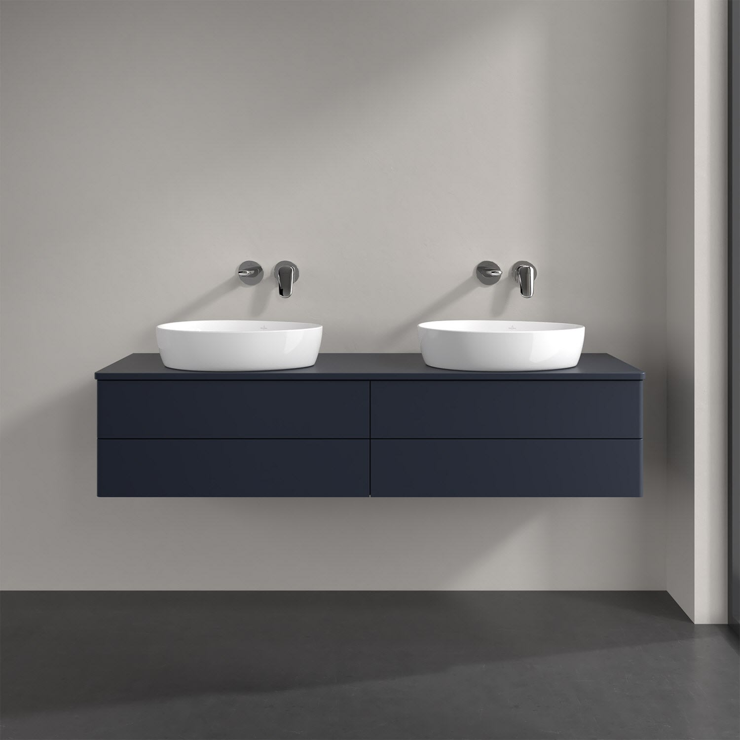 Villeroy & Boch Antao Waschbeckenunterschrank, 160 x 36 cm, 4 Auszüge mit LED-Licht, Front ohne Struktur, ohne Hahnloch, für Waschtisch links und rech