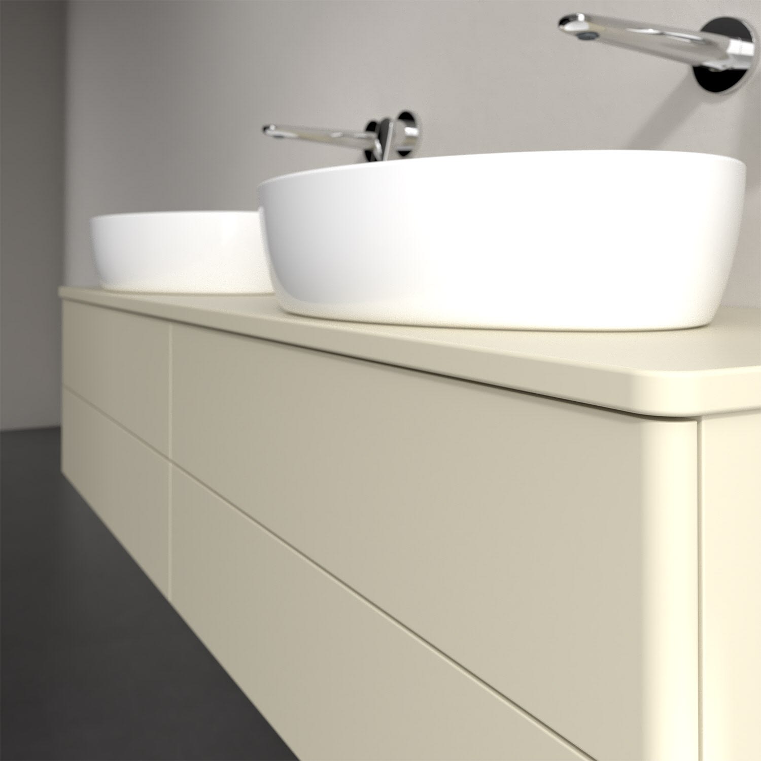 Für diesen Waschbeckenunterschrank stehen Ihnen Aufsatzwaschtische aus verschiedenen Serien zur Verfügung (siehe "Passliste" unter Downloads). Ein ausgewähltes Beispiel finden Sie im Zubehör. Den Waschtisch bitte separat mitbestellen.