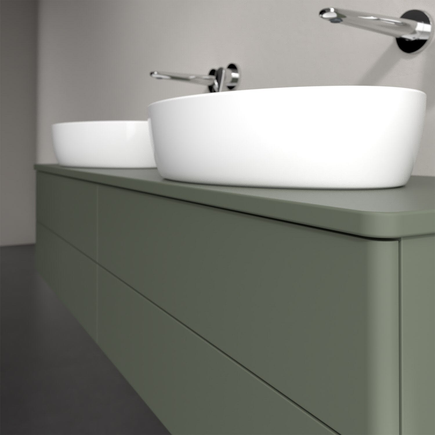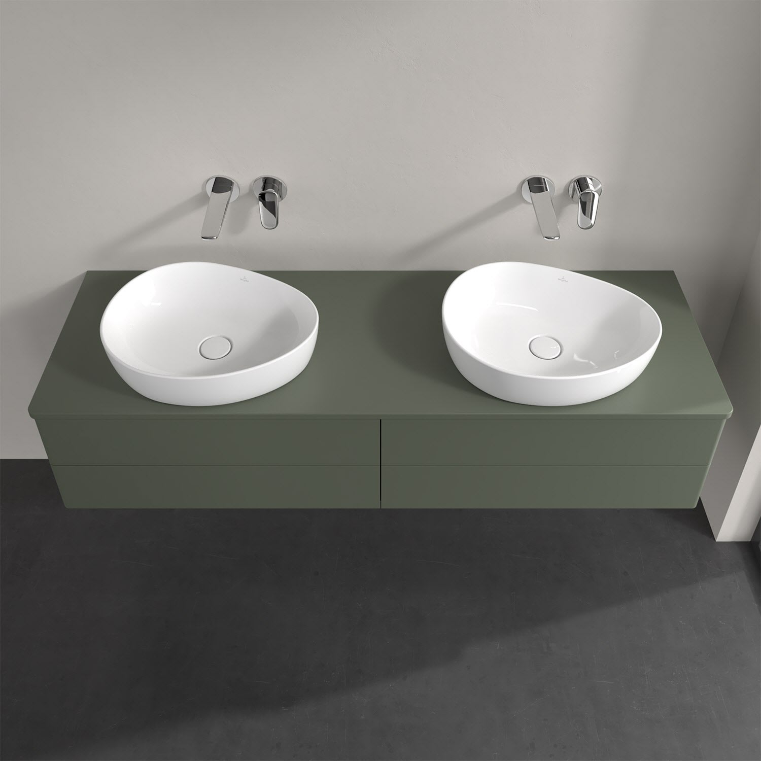 Für diesen Waschbeckenunterschrank stehen Ihnen Aufsatzwaschtische aus verschiedenen Serien zur Verfügung (siehe "Passliste" unter Downloads). Ein ausgewähltes Beispiel finden Sie im Zubehör. Den Waschtisch bitte separat mitbestellen.