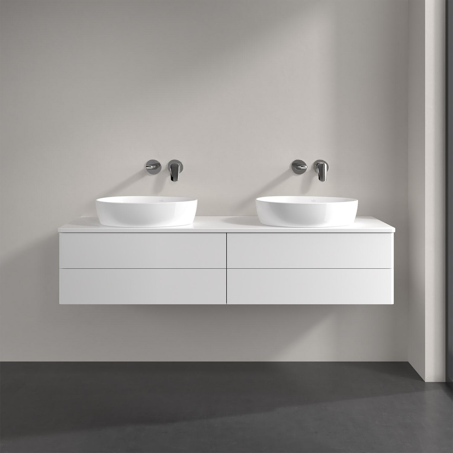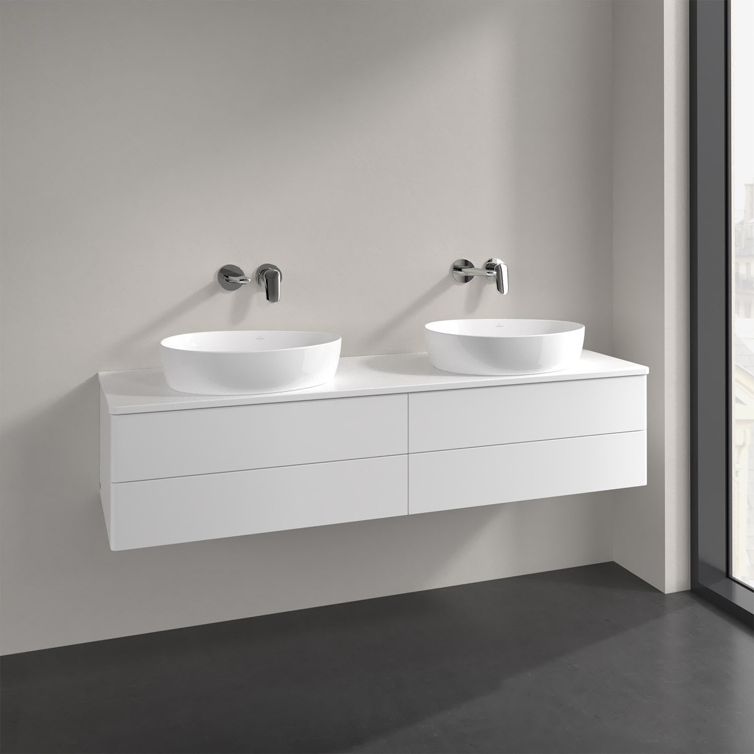 Villeroy & Boch Antao Waschbeckenunterschrank, 160 x 36 cm, 4 Auszüge mit LED-Licht, Front ohne Struktur, ohne Hahnloch, für Waschtisch links und rech