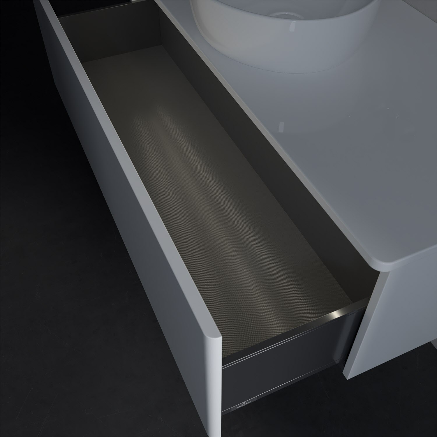 - kein Umfallen oder Verrutschen von Pflegeprodukten in den Schubladen dank rutschhemmendem Boden