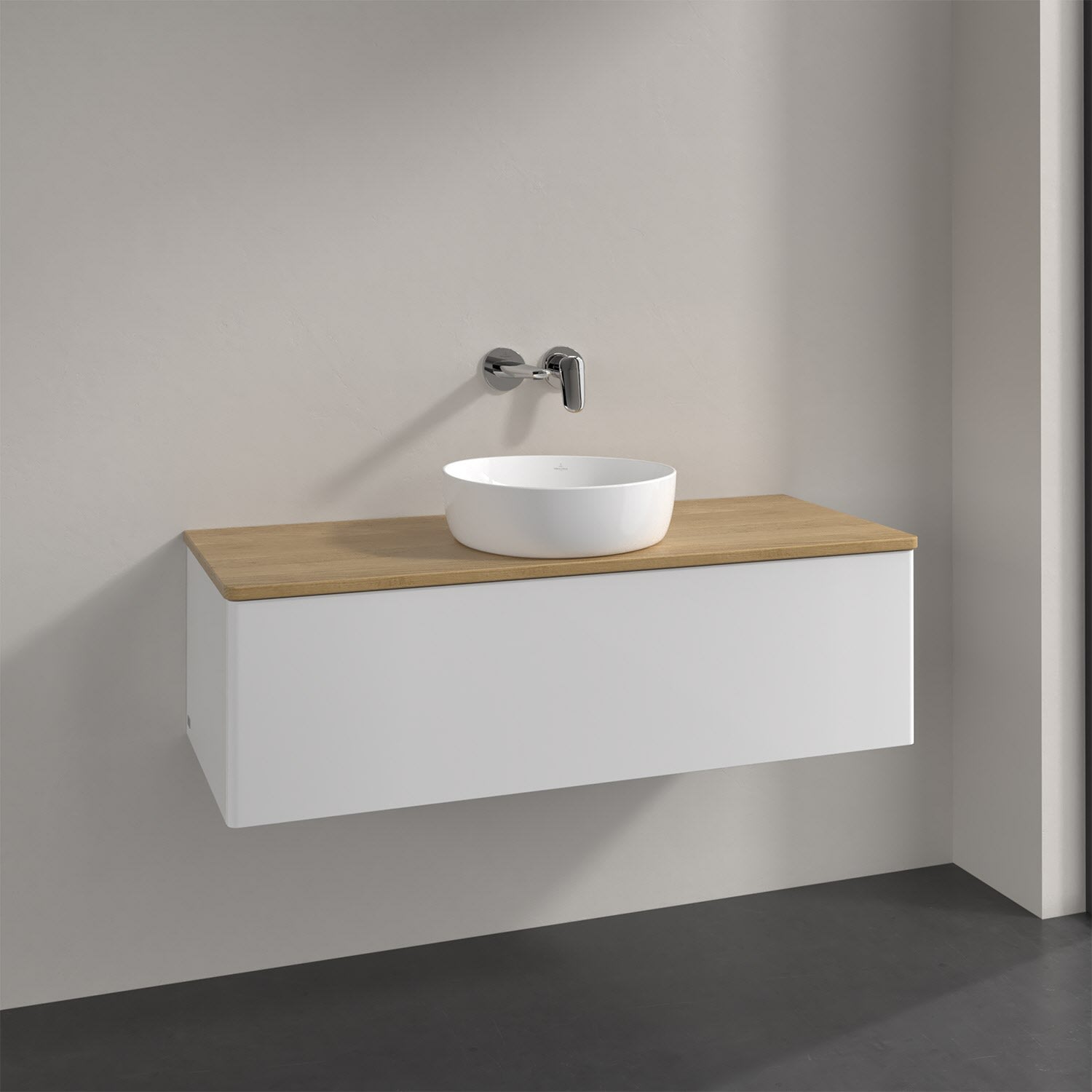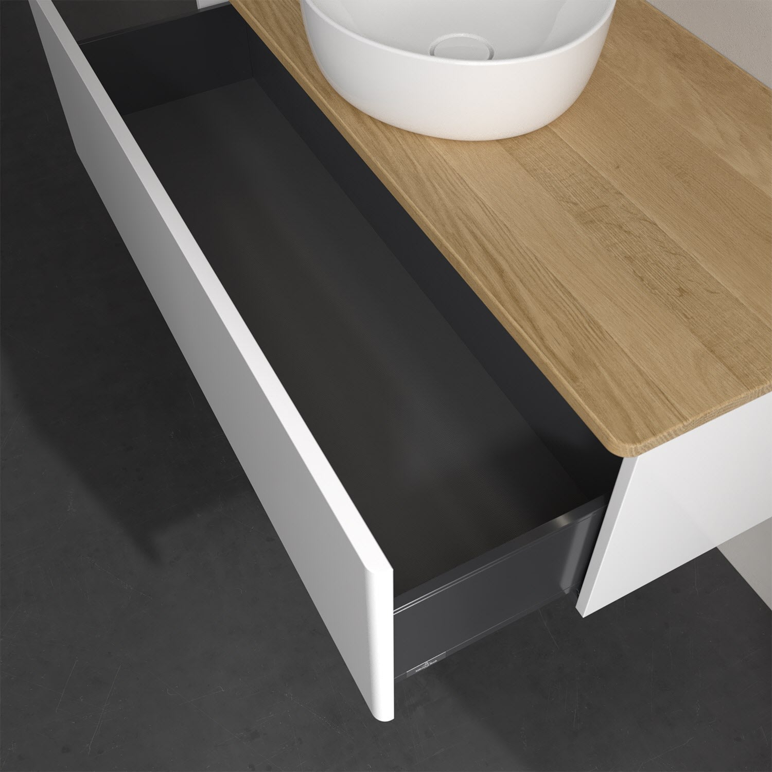 Villeroy & Boch Antao Waschbeckenunterschrank, 120 x 36 cm, 1 Auszug mit LED-Licht, Front ohne Struktur, ohne Hahnloch, für Waschtisch mittig