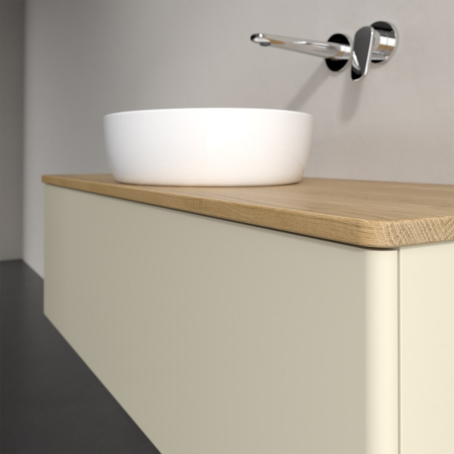 Für diesen Waschbeckenunterschrank stehen Ihnen Aufsatzwaschtische aus verschiedenen Serien zur Verfügung (siehe "Passliste" unter Downloads). Ein ausgewähltes Beispiel finden Sie im Zubehör. Den Waschtisch bitte separat mitbestellen.