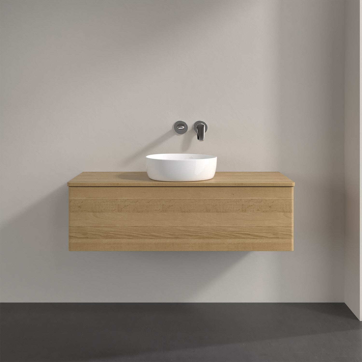 Villeroy & Boch Antao Waschbeckenunterschrank, 120 x 36 cm, 1 Auszug mit LED-Licht, Front ohne Struktur, ohne Hahnloch, für Waschtisch mittig