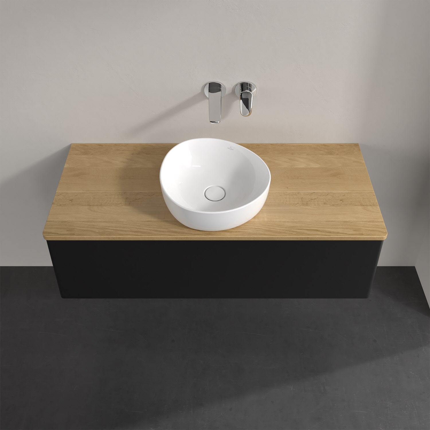 Für diesen Waschbeckenunterschrank stehen Ihnen Aufsatzwaschtische aus verschiedenen Serien zur Verfügung (siehe "Passliste" unter Downloads). Ein ausgewähltes Beispiel finden Sie im Zubehör. Den Waschtisch bitte separat mitbestellen.