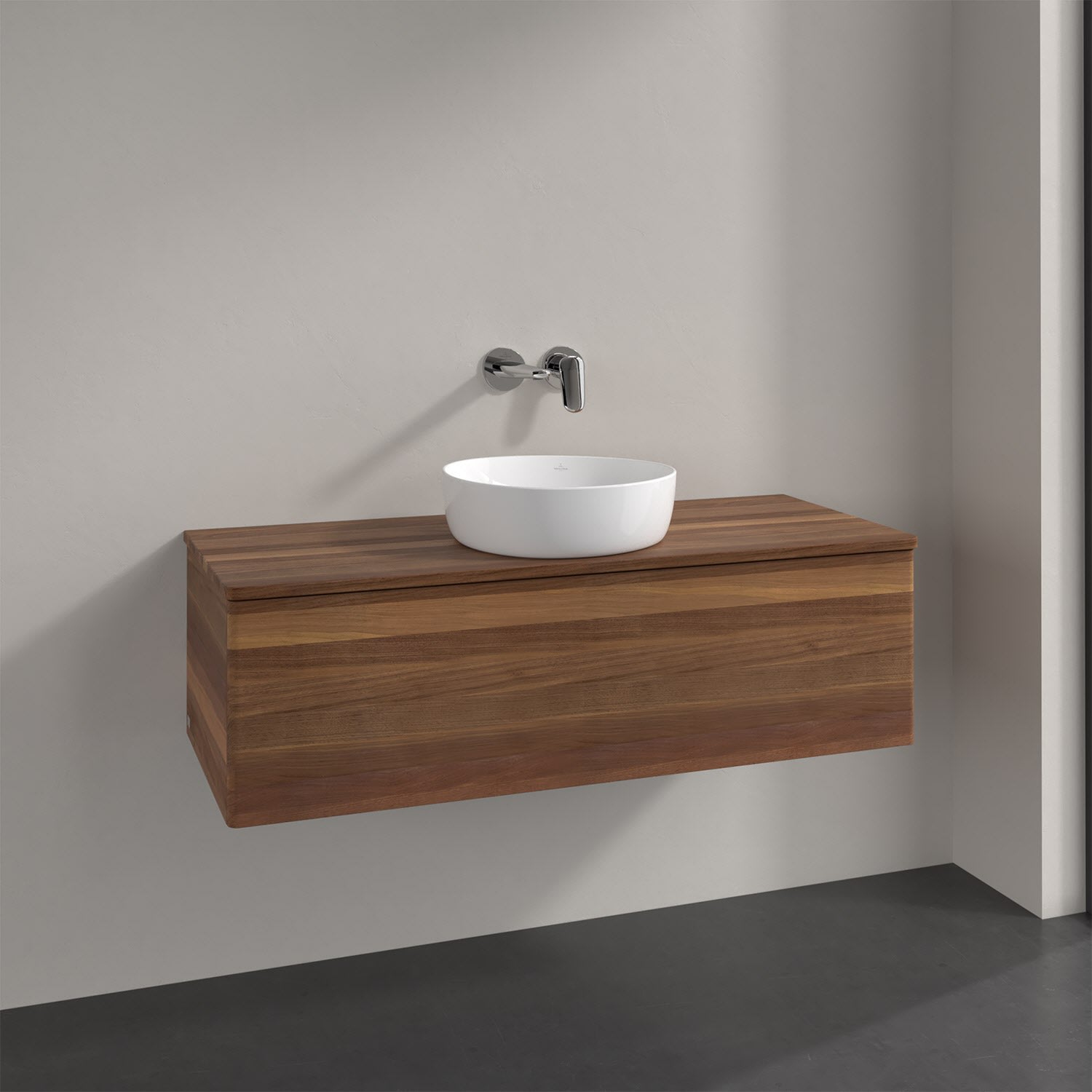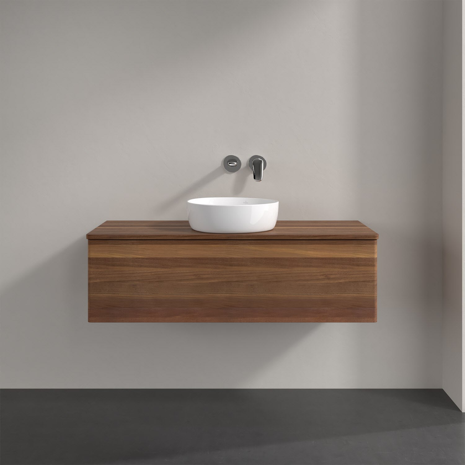 Für diesen Waschbeckenunterschrank stehen Ihnen Aufsatzwaschtische aus verschiedenen Serien zur Verfügung (siehe "Passliste" unter Downloads). Ein ausgewähltes Beispiel finden Sie im Zubehör. Den Waschtisch bitte separat mitbestellen.