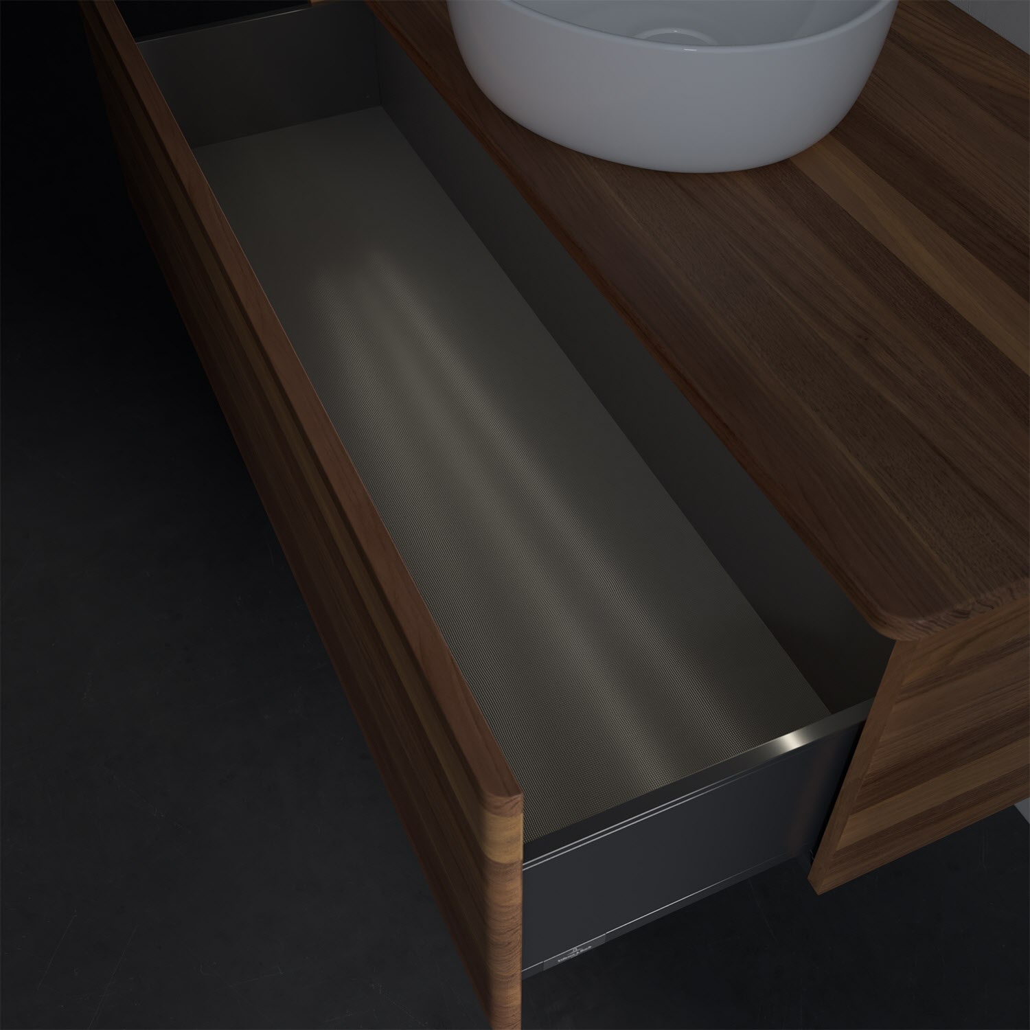 - kein Umfallen oder Verrutschen von Pflegeprodukten in den Schubladen dank rutschhemmendem Boden