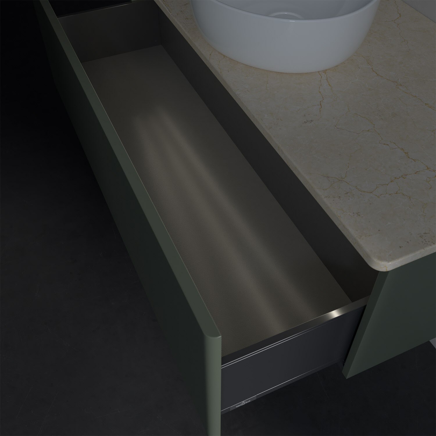 - kein Umfallen oder Verrutschen von Pflegeprodukten in den Schubladen dank rutschhemmendem Boden
