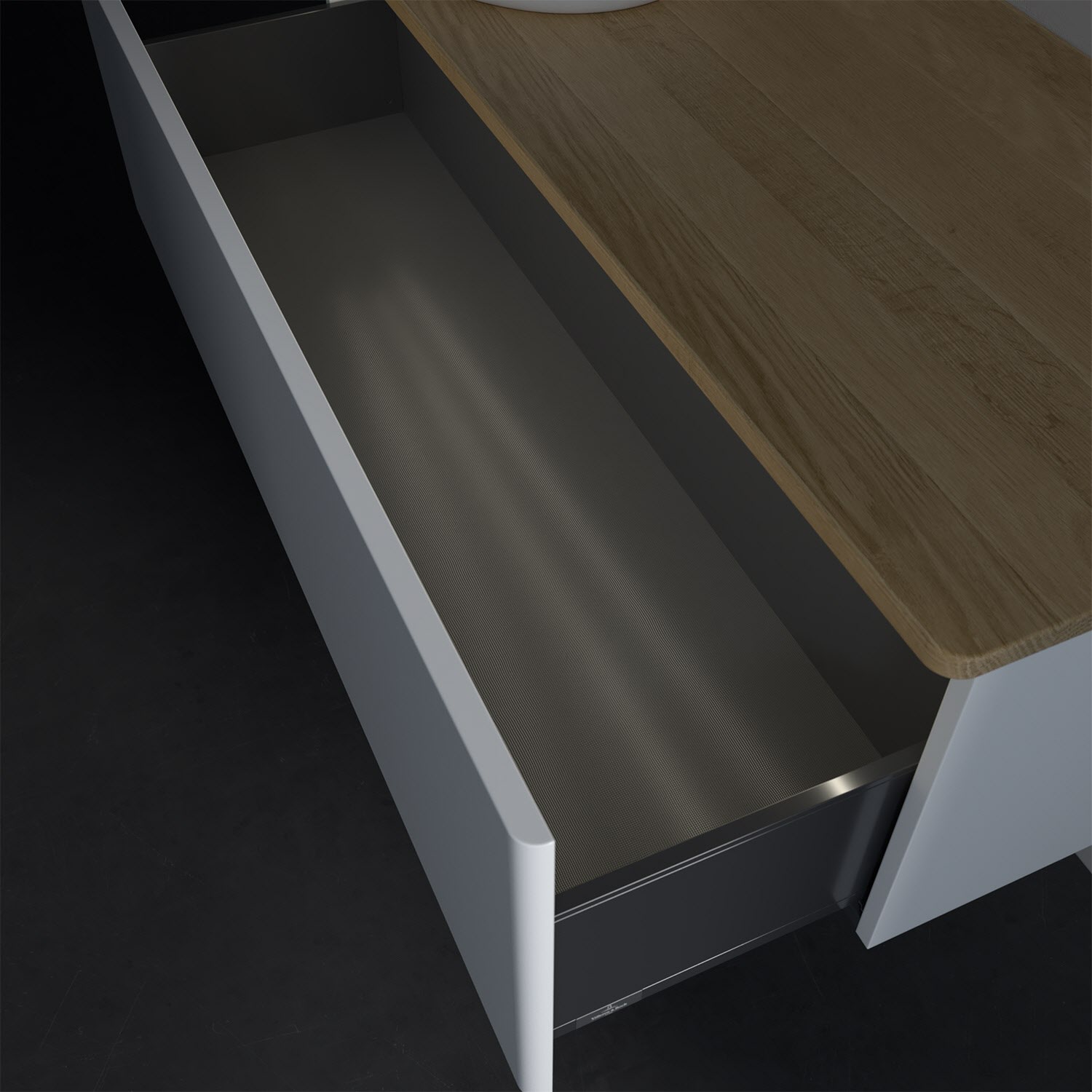 - kein Umfallen oder Verrutschen von Pflegeprodukten in den Schubladen dank rutschhemmendem Boden