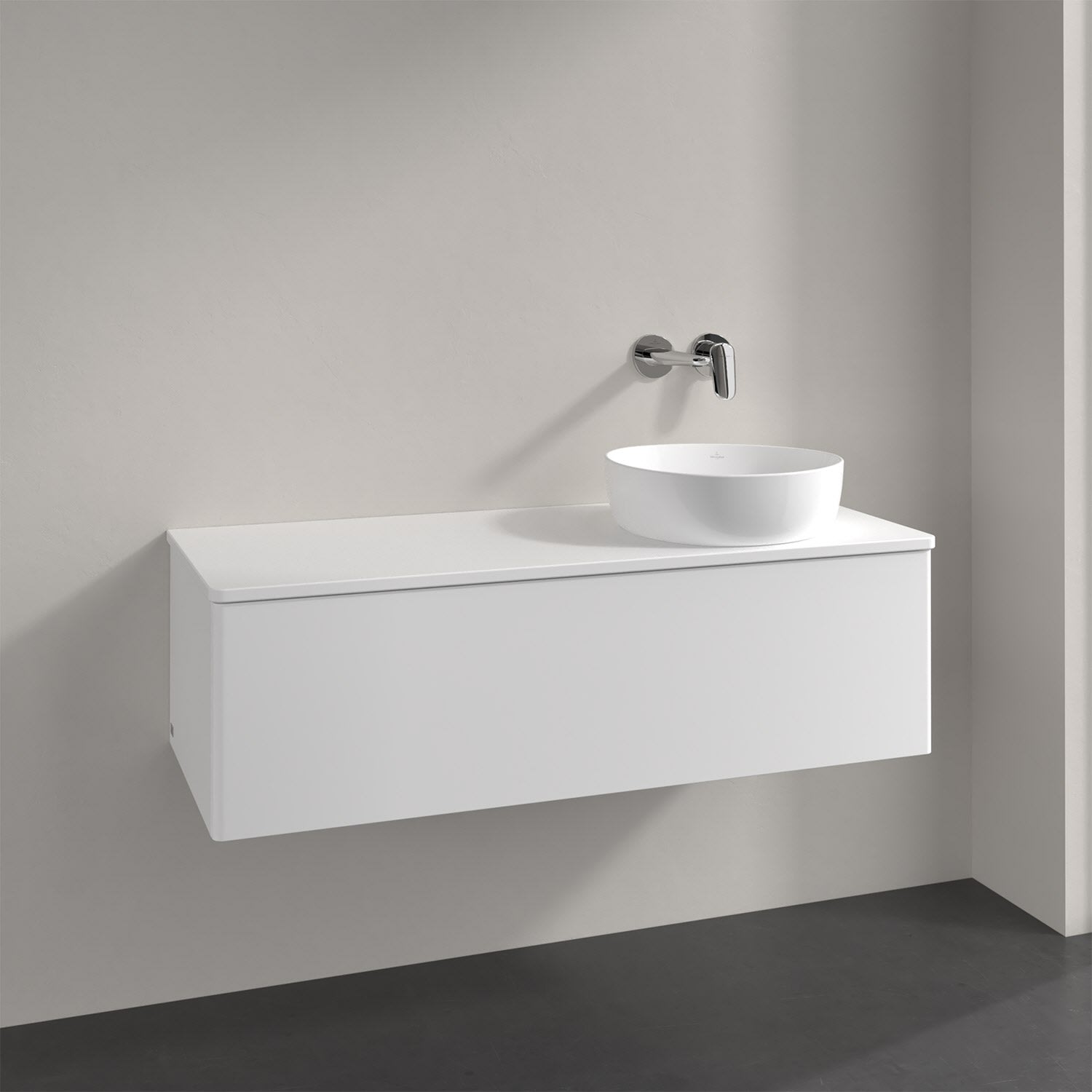 Villeroy & Boch Antao Waschbeckenunterschrank, 120 x 36 cm, 1 Auszug mit LED-Licht, Front ohne Struktur, ohne Hahnloch, für Waschtisch rechts
