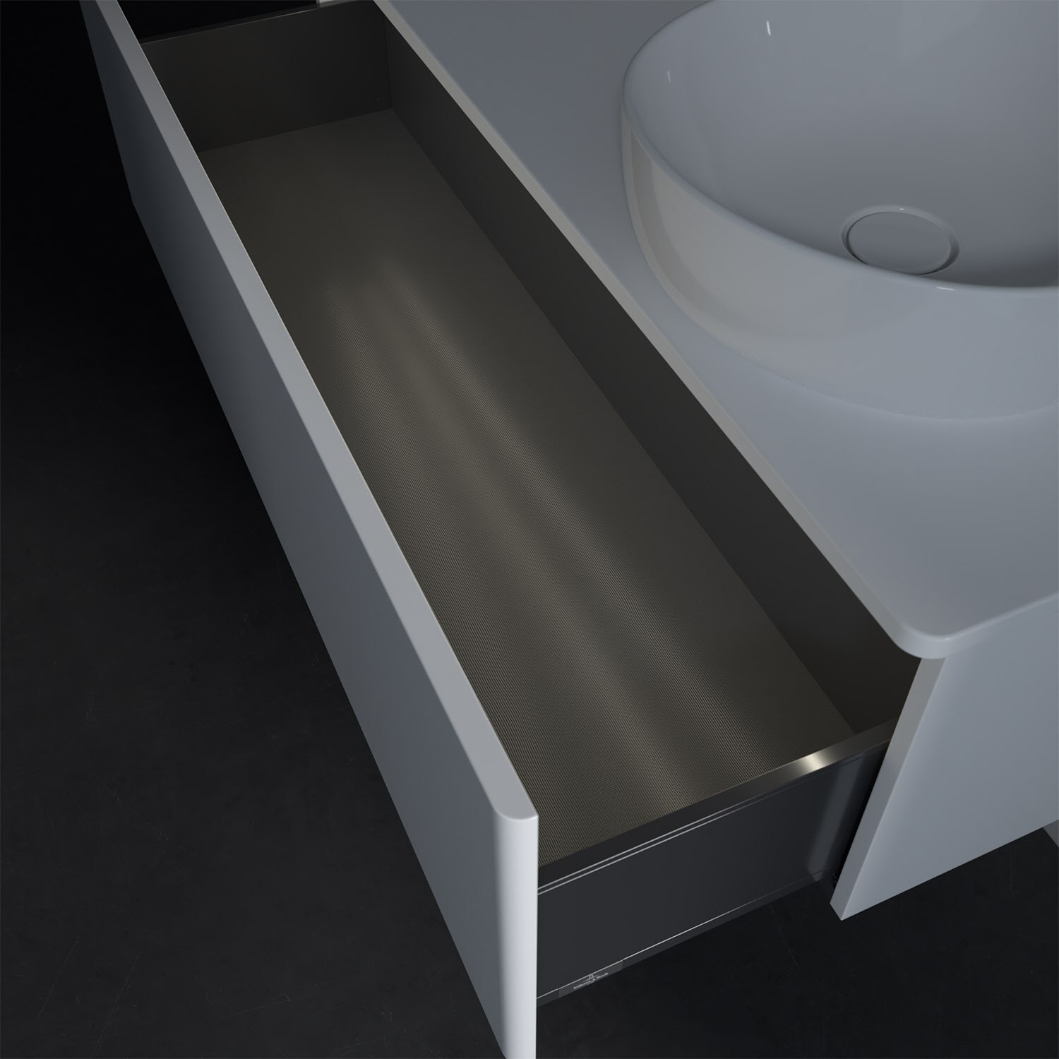 - kein Umfallen oder Verrutschen von Pflegeprodukten in den Schubladen dank rutschhemmendem Boden