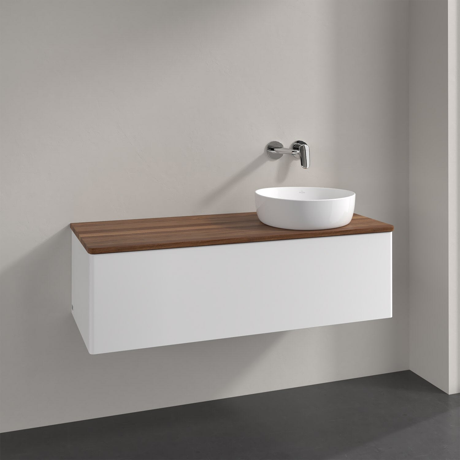 Villeroy & Boch Antao Waschbeckenunterschrank, 120 x 36 cm, 1 Auszug mit LED-Licht, Front ohne Struktur, ohne Hahnloch, für Waschtisch rechts