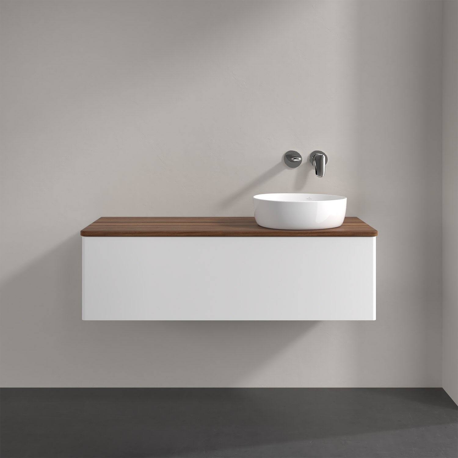 Für diesen Waschbeckenunterschrank stehen Ihnen Aufsatzwaschtische aus verschiedenen Serien zur Verfügung (siehe "Passliste" unter Downloads). Ein ausgewähltes Beispiel finden Sie im Zubehör. Den Waschtisch bitte separat mitbestellen.