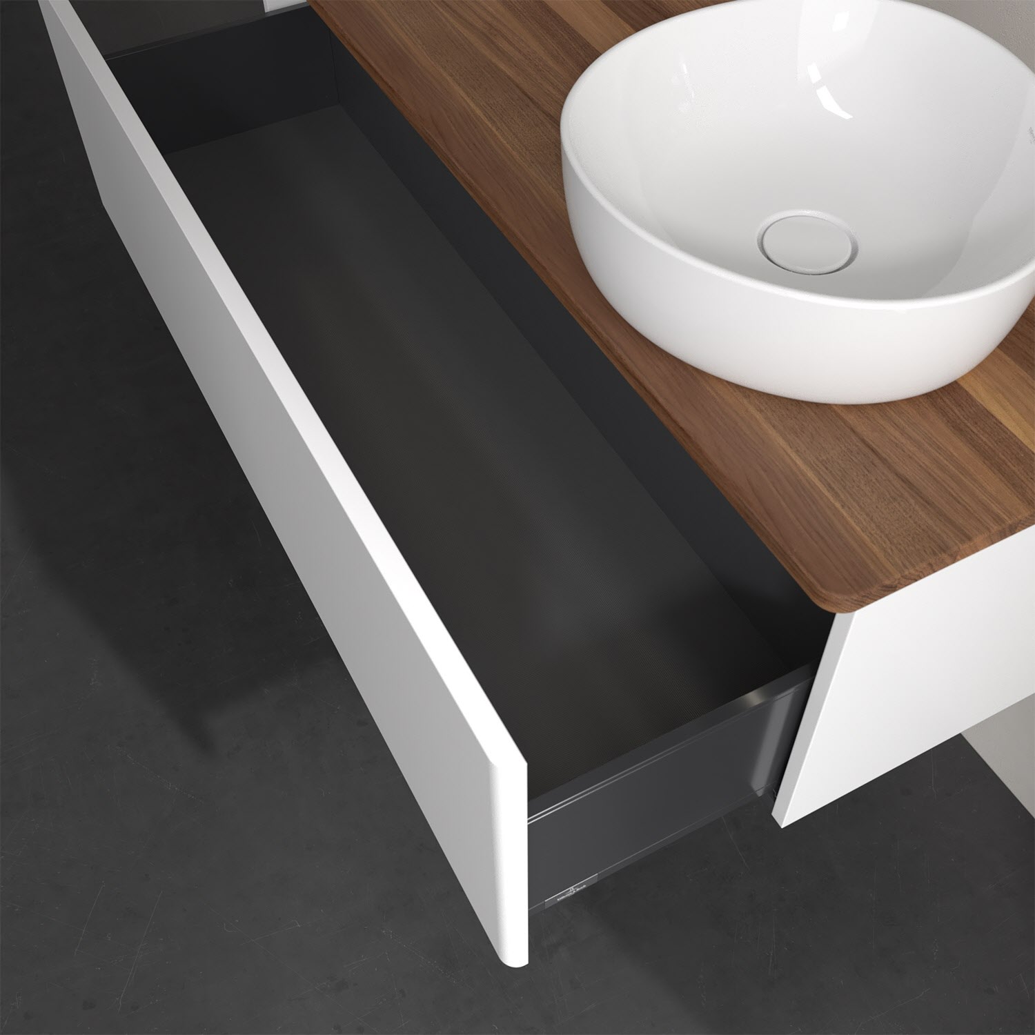 - kein Umfallen oder Verrutschen von Pflegeprodukten in den Schubladen dank rutschhemmendem Boden