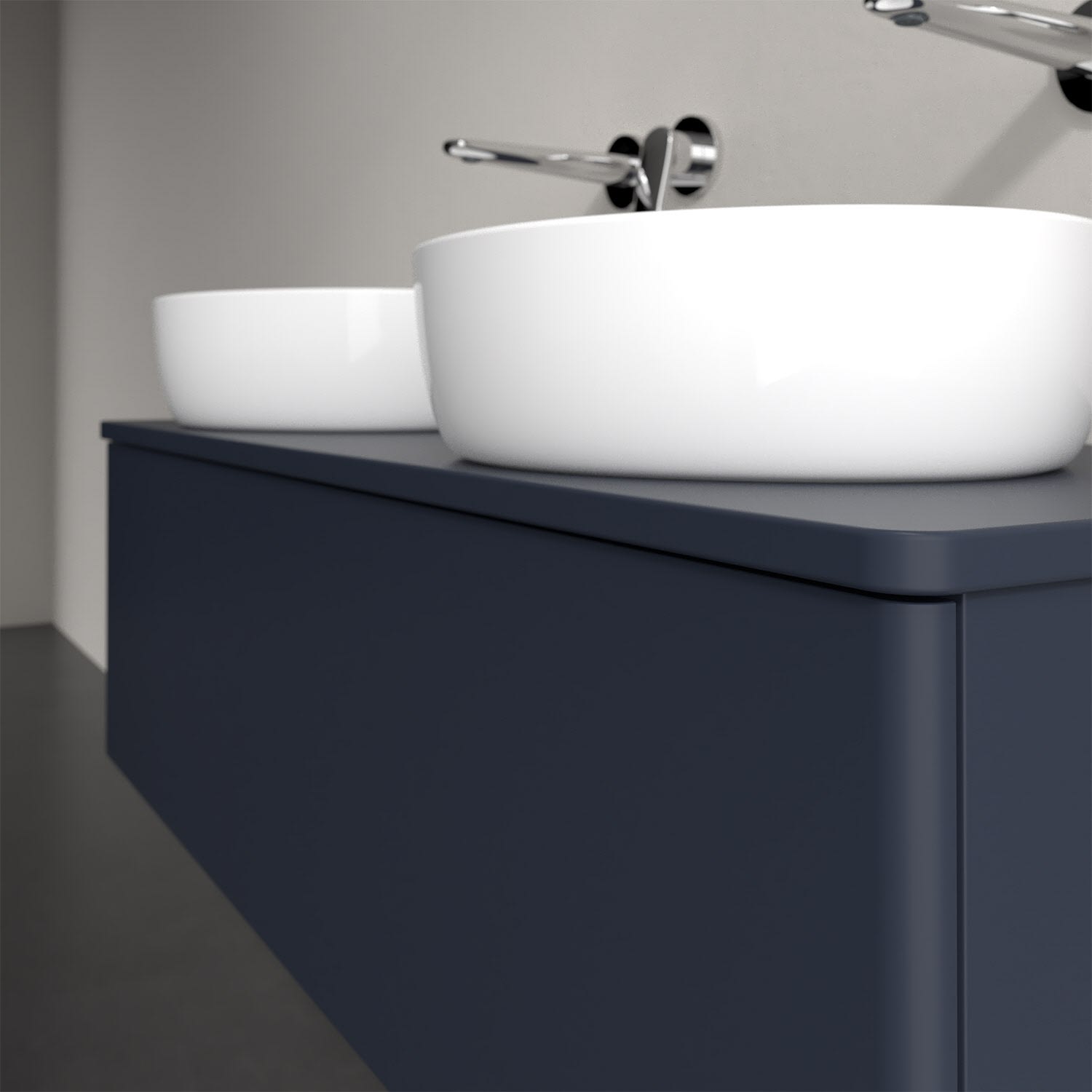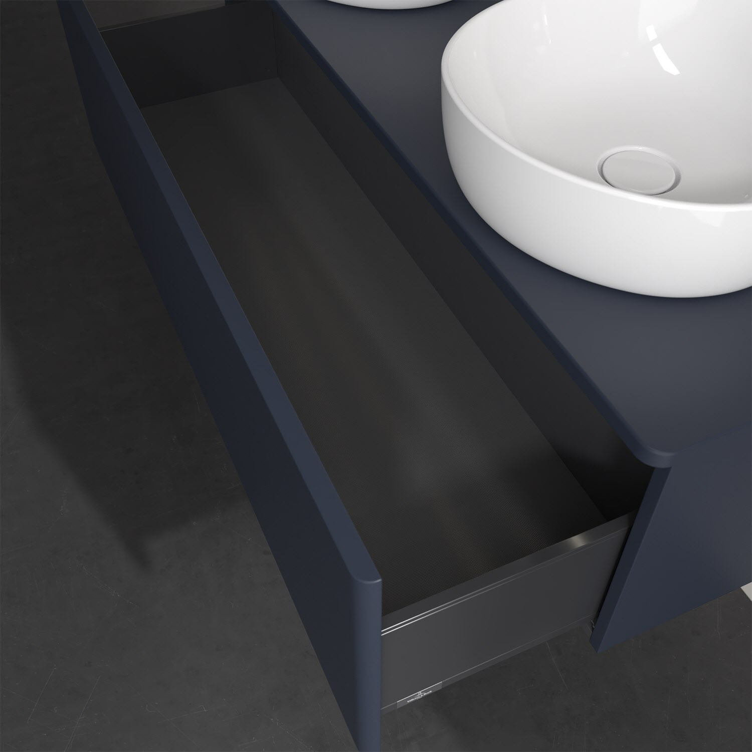 Der wandhängende Antao Waschtischunterschrank von Villeroy & Boch bietet nicht nur jede Menge Stauraum – er ist dank seines naturinspirierten Designs mit seinen abgerundeten Kanten auch noch besonders stilvoll und schafft eine gemütliche Atmosphäre im Badezimmer. Kombiniert mit zwei passenden Aufsatzwaschtischen also die ideale Wahl. Ein extra hoher Auszug bietet viel Platz, um alles Notwendige zu verstauen und Ordnung zu halten. Öffnen lässt er sich durch leichten Druck auf die grifflose Front. Dabei aktiviert sich übrigens die Auszugsbeleuchtung in angenehmem Warmweiß. Dank Vollauszug hat man immer alles im Blick und der Antirutschboden verhindert ein Umfallen oder Verrutschen der Gegenstände. Einfach clever! Für eine besonders leichte Pflege sorgt die mehrschichtig deckend lackierte Oberfläche.