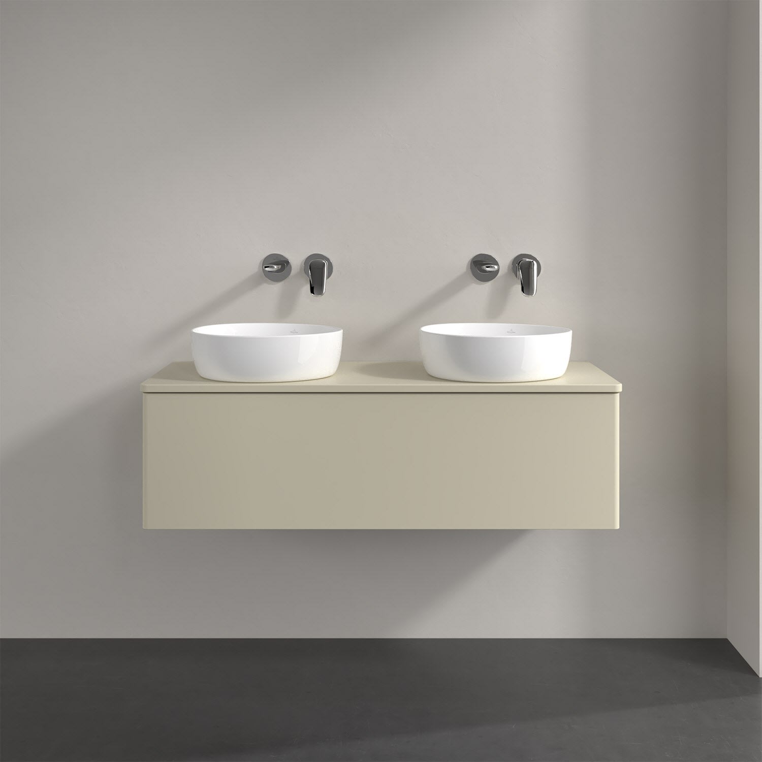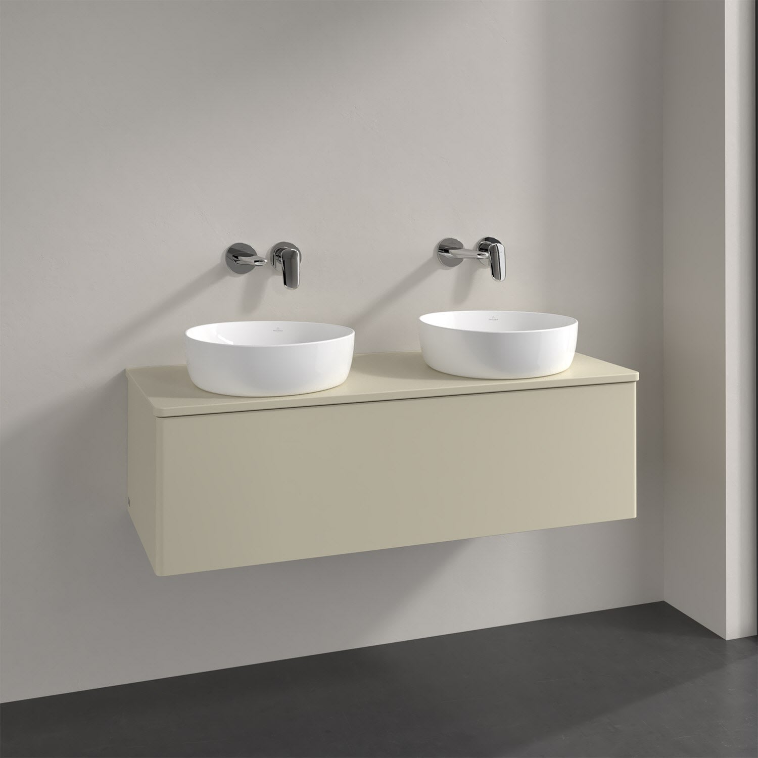 Villeroy & Boch Antao Waschbeckenunterschrank, 120 x 36 cm, 1 Auszug mit LED-Licht, Front ohne Struktur, ohne Hahnloch, für Waschtisch links und recht
