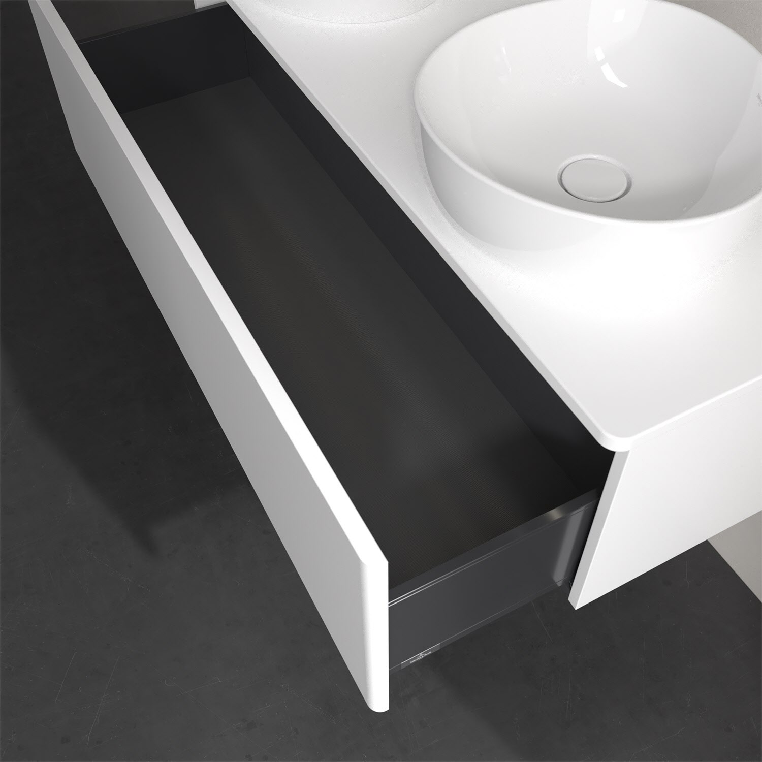 - kein Umfallen oder Verrutschen von Pflegeprodukten in den Schubladen dank rutschhemmendem Boden