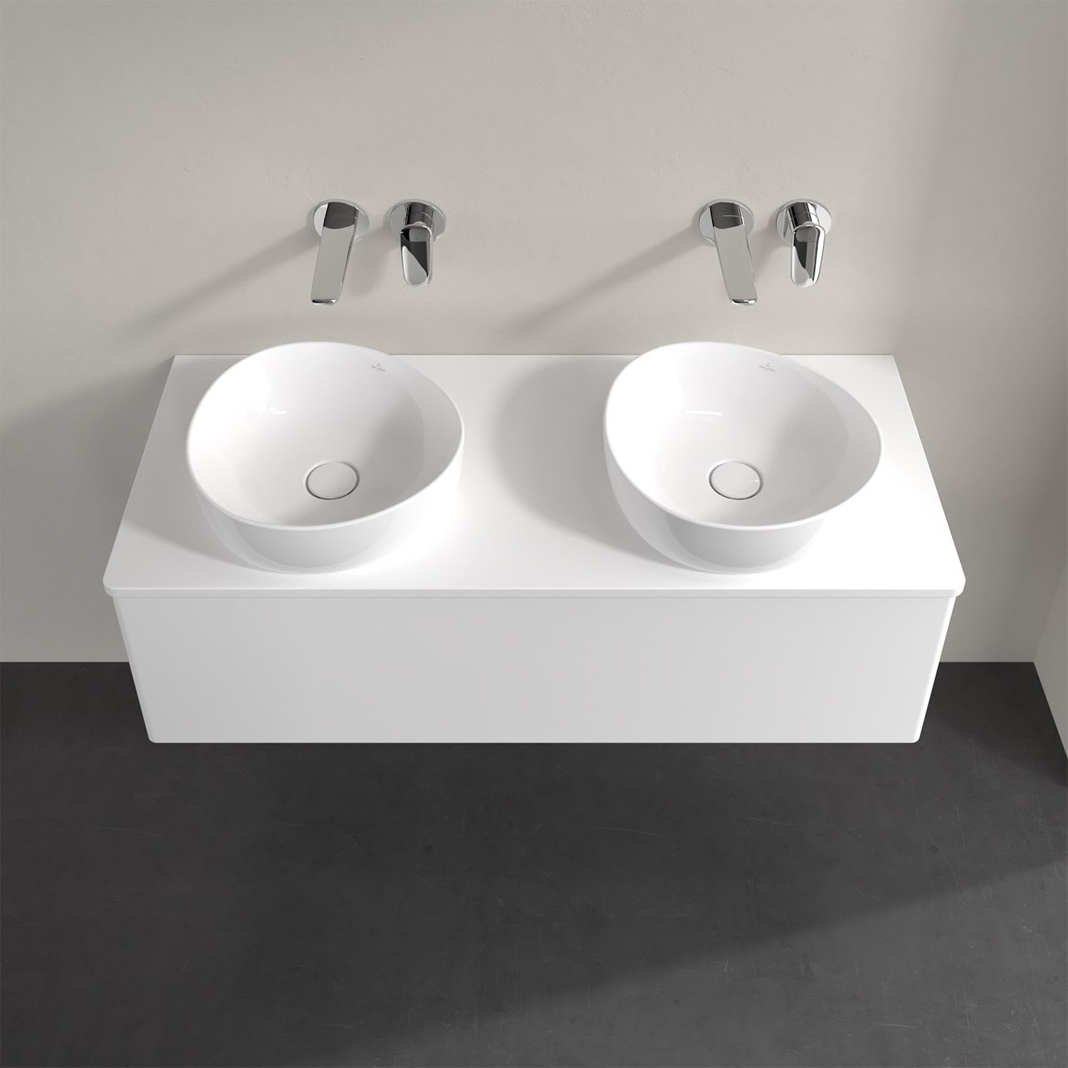 Für diesen Waschbeckenunterschrank stehen Ihnen Aufsatzwaschtische aus verschiedenen Serien zur Verfügung (siehe "Passliste" unter Downloads). Ein ausgewähltes Beispiel finden Sie im Zubehör. Den Waschtisch bitte separat mitbestellen.