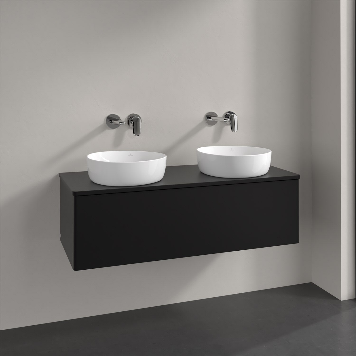 Der wandhängende Antao Waschtischunterschrank von Villeroy & Boch bietet nicht nur jede Menge Stauraum – er ist dank seines naturinspirierten Designs mit seinen abgerundeten Kanten auch noch besonders stilvoll und schafft eine gemütliche Atmosphäre im Badezimmer. Kombiniert mit zwei passenden Aufsatzwaschtischen also die ideale Wahl. Ein extra hoher Auszug bietet viel Platz, um alles Notwendige zu verstauen und Ordnung zu halten. Öffnen lässt er sich durch leichten Druck auf die grifflose Front. Dabei aktiviert sich übrigens die Auszugsbeleuchtung in angenehmem Warmweiß. Dank Vollauszug hat man immer alles im Blick und der Antirutschboden verhindert ein Umfallen oder Verrutschen der Gegenstände. Einfach clever! Für eine besonders leichte Pflege sorgt die mehrschichtig deckend lackierte Oberfläche.