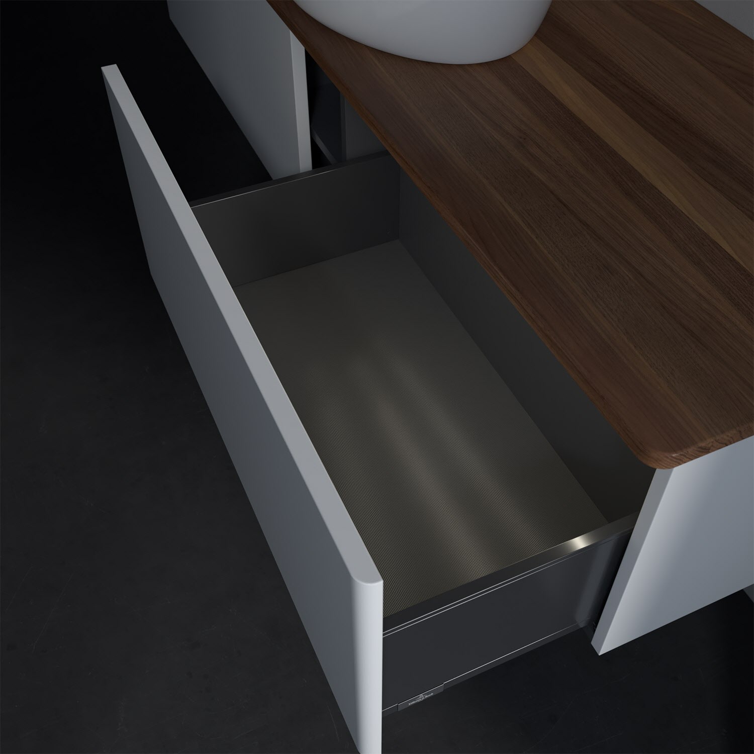 - kein Umfallen oder Verrutschen von Pflegeprodukten in den Schubladen dank rutschhemmendem Boden
