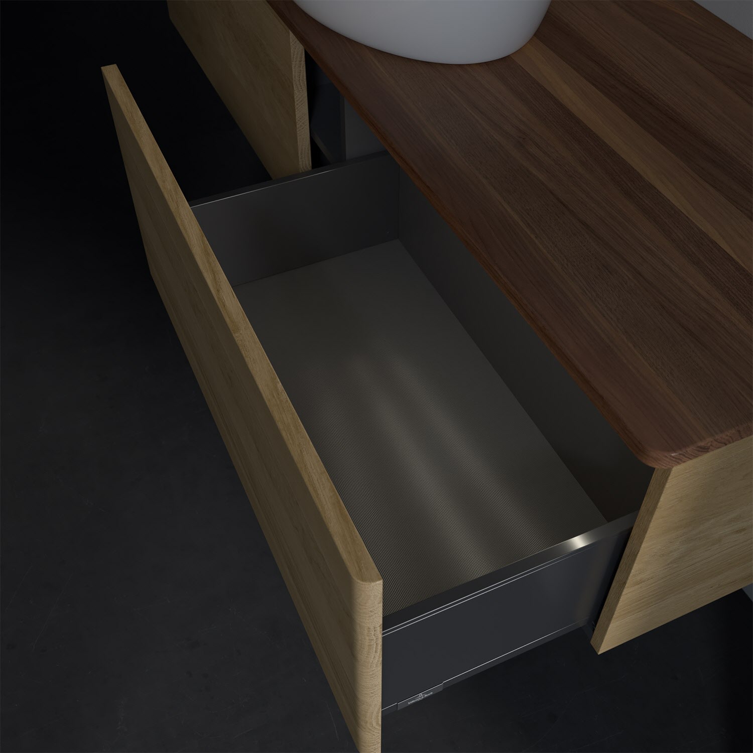 - kein Umfallen oder Verrutschen von Pflegeprodukten in den Schubladen dank rutschhemmendem Boden